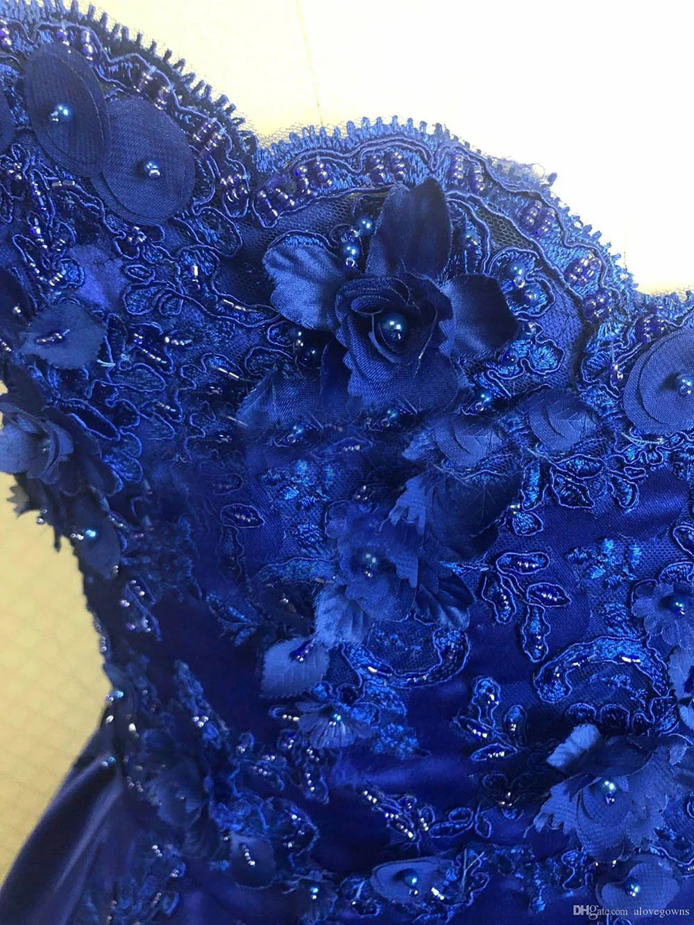 Vkiss Store Новое Бальное Платье ярко-синего цвета, женское кружевное платье с открытыми плечами и 3D цветами, блестящее Атласное Вечернее официальное платье