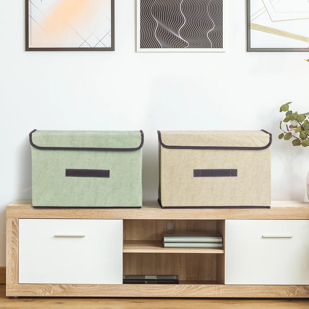 Складные коробки для хранения из нетканого материала с крышкой, 2 размера, отделочный шкаф, косметика, бытовая одежда, игрушки, органайзер для всякой всячины