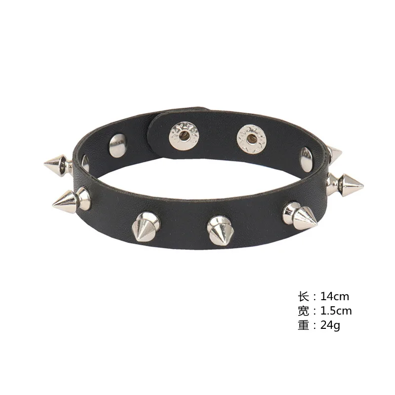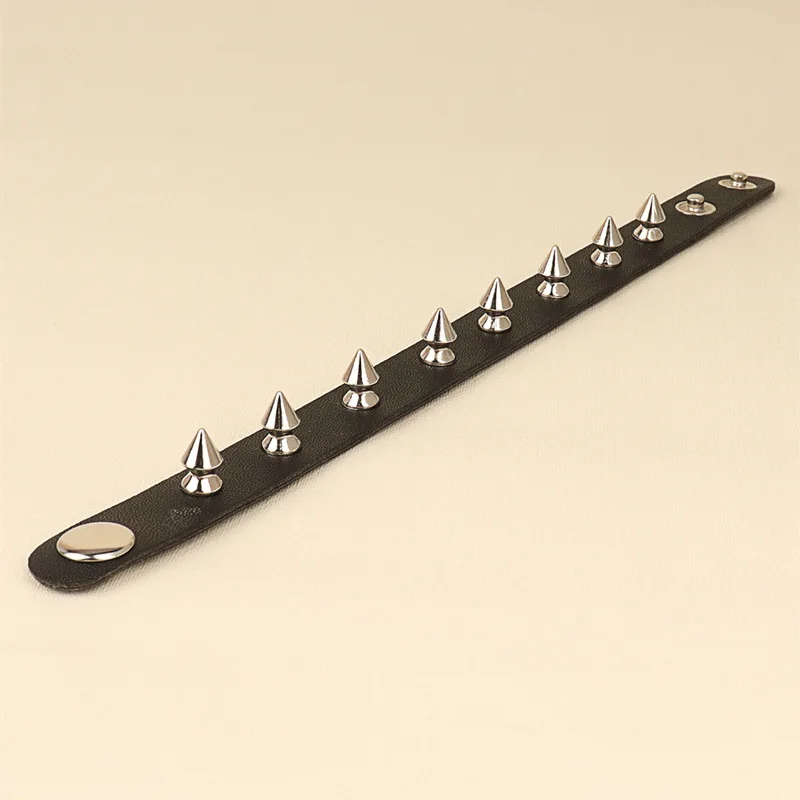 Классические готические панковские женские и мужские браслеты из черной искусственной кожи Серебряный регулируемый браслет