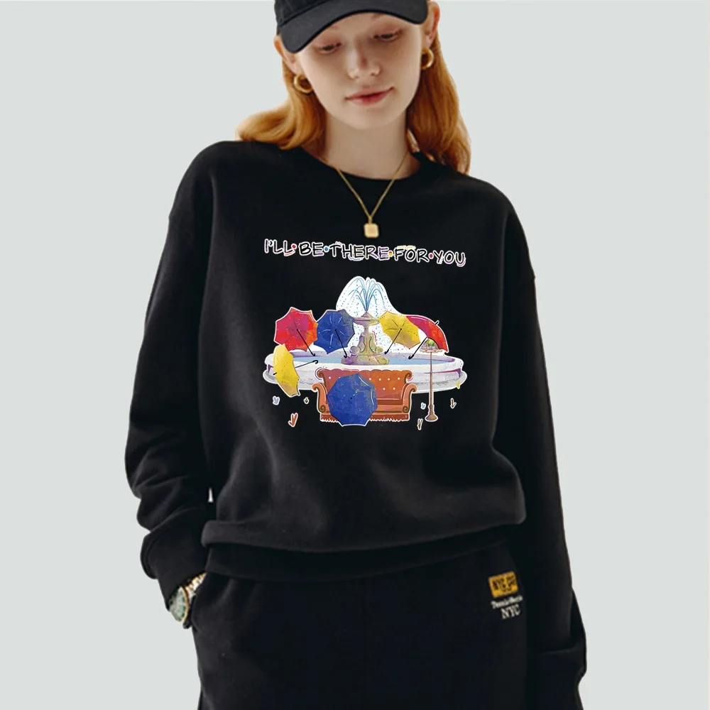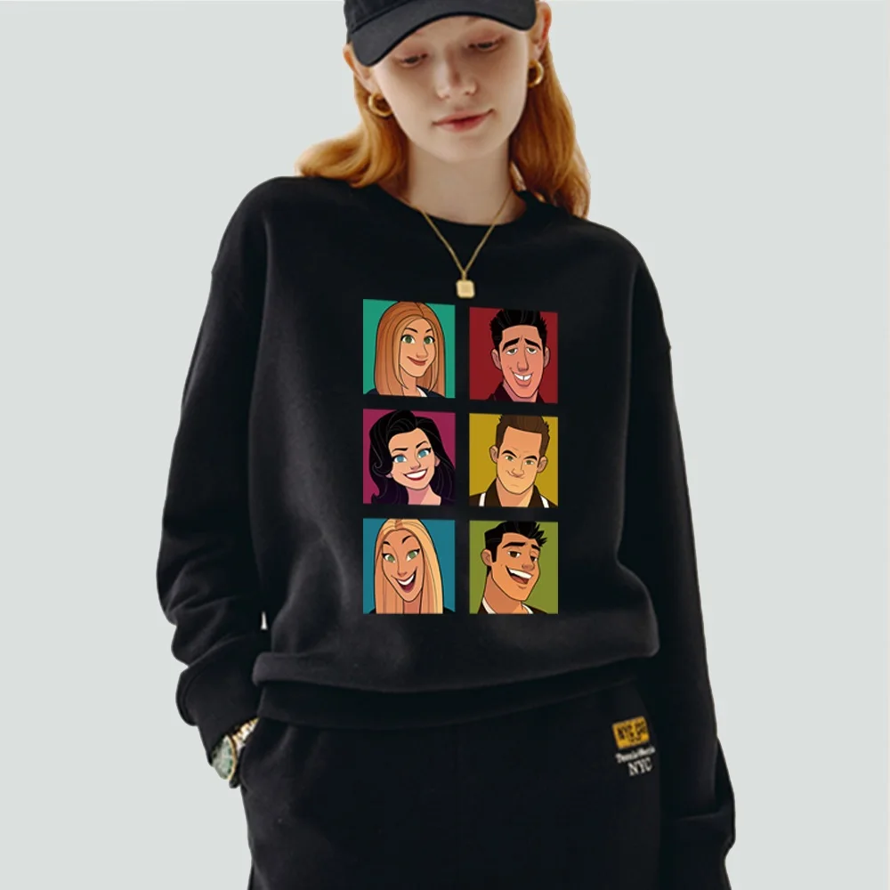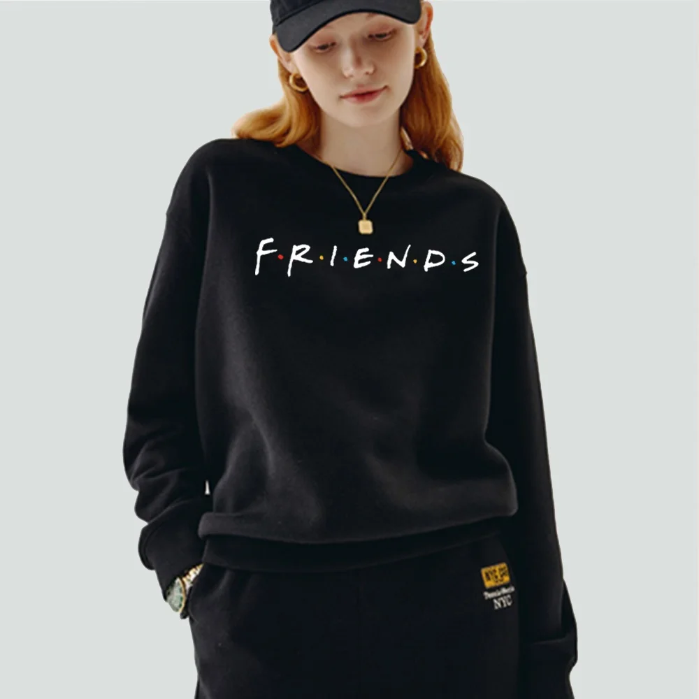 Женская Осенняя одежда, толстовка с длинным рукавом, модный белый пуловер, серия с мультяшным принтом друзей, о-образный вырез, Повседневная теплая толстовка