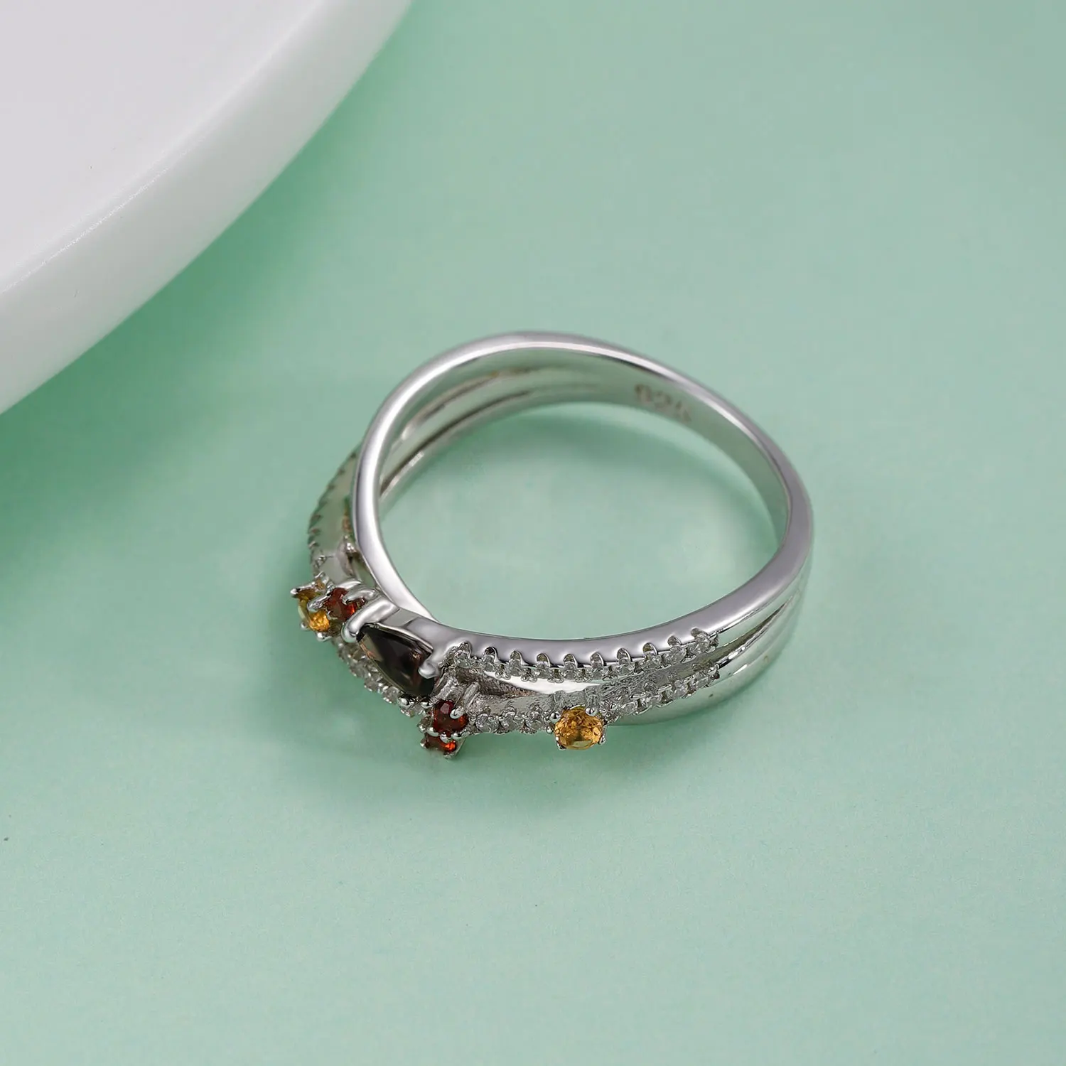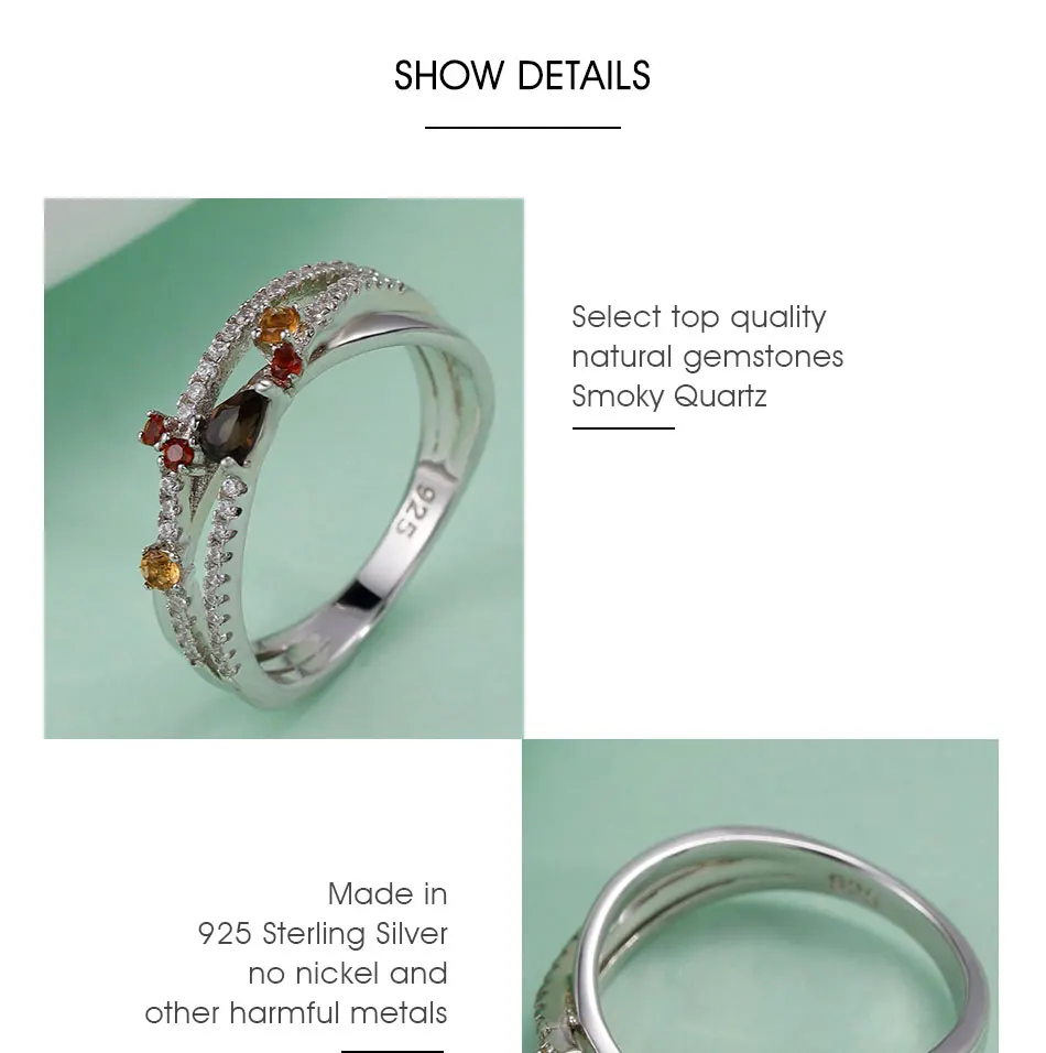 Женское кольцо с натуральным дымчатым кварцем, в граненом стиле