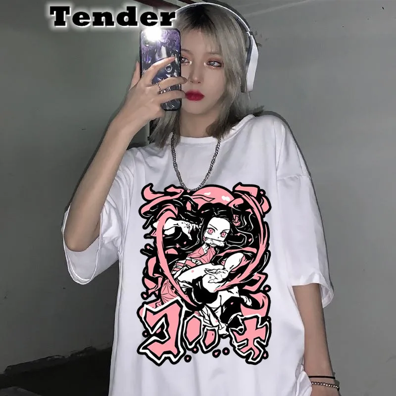 Футболка женская с мультяшным принтом, Свободный Топ с принтом, с рассекающим демонов, в стиле аниме, в Корейском стиле, на лето