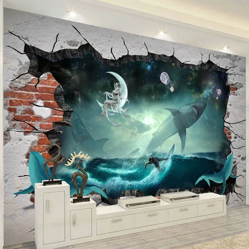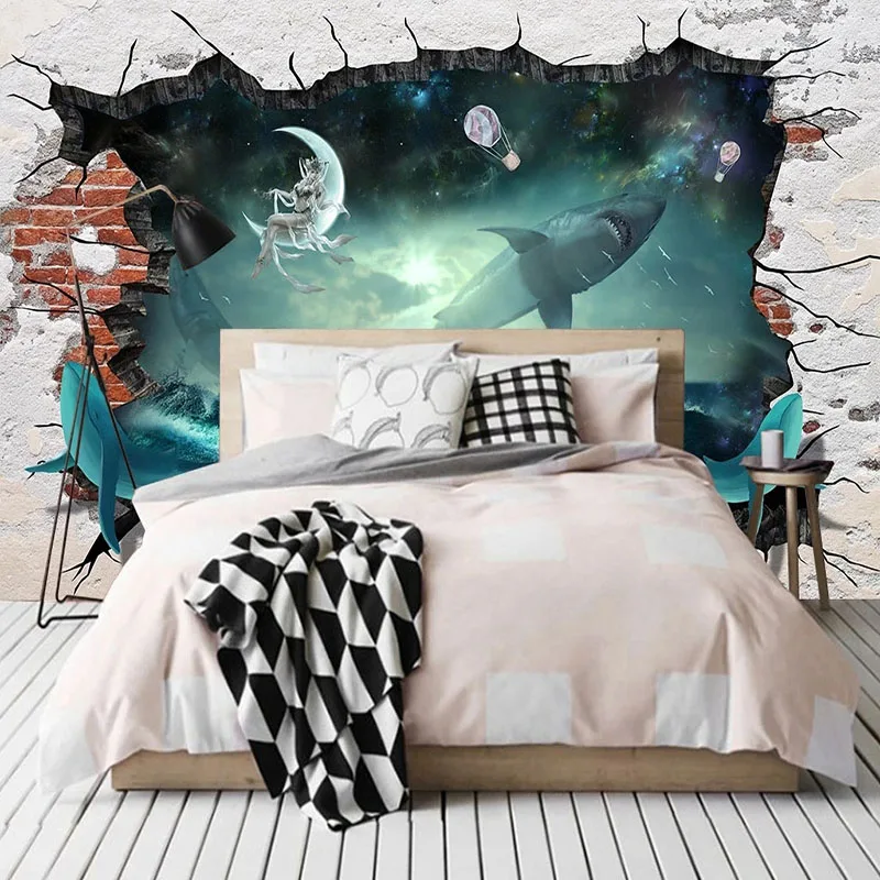 Пользовательские Настенные обои современный КИТ Акула звездное небо 3D стерео сломанный Настенный декор Детская спальня фон настенная живопись 3 D
