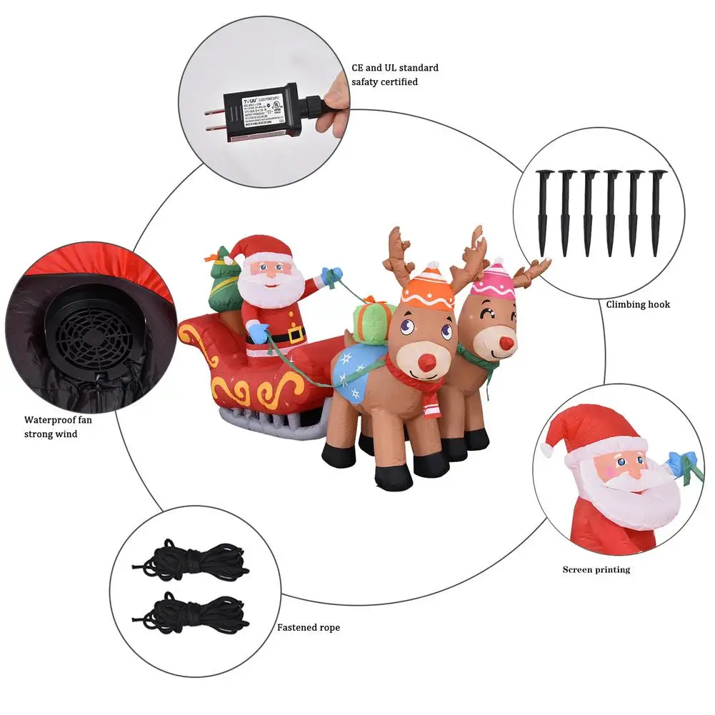 213 см7 футов Рождественский надувной Санты олень сани наружный Дек...