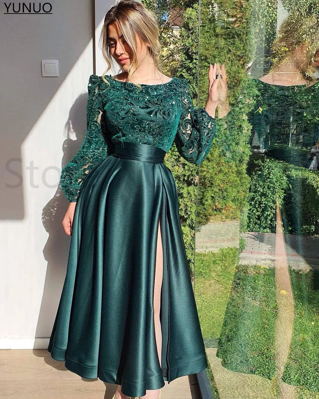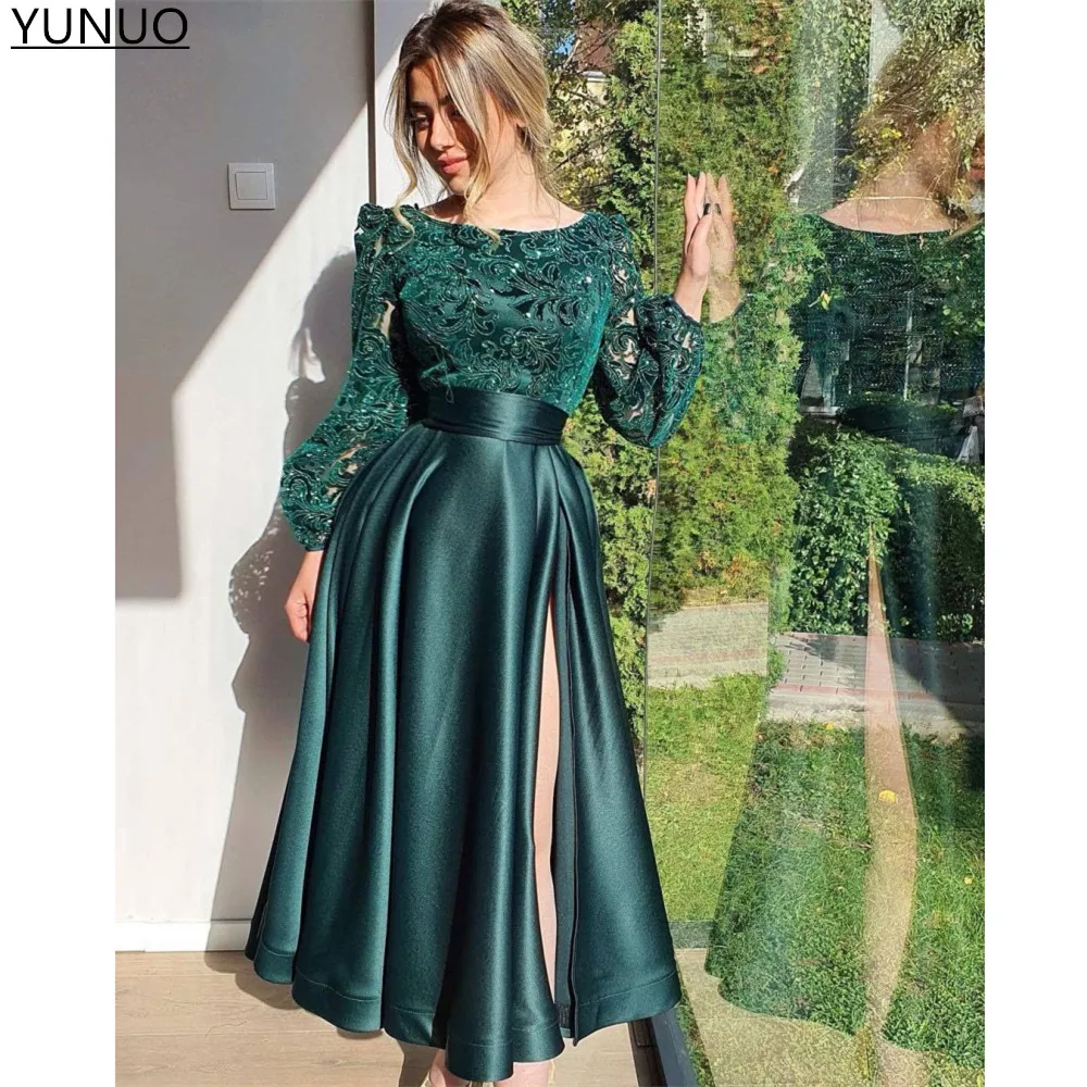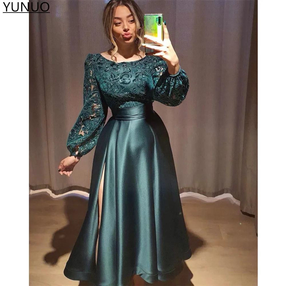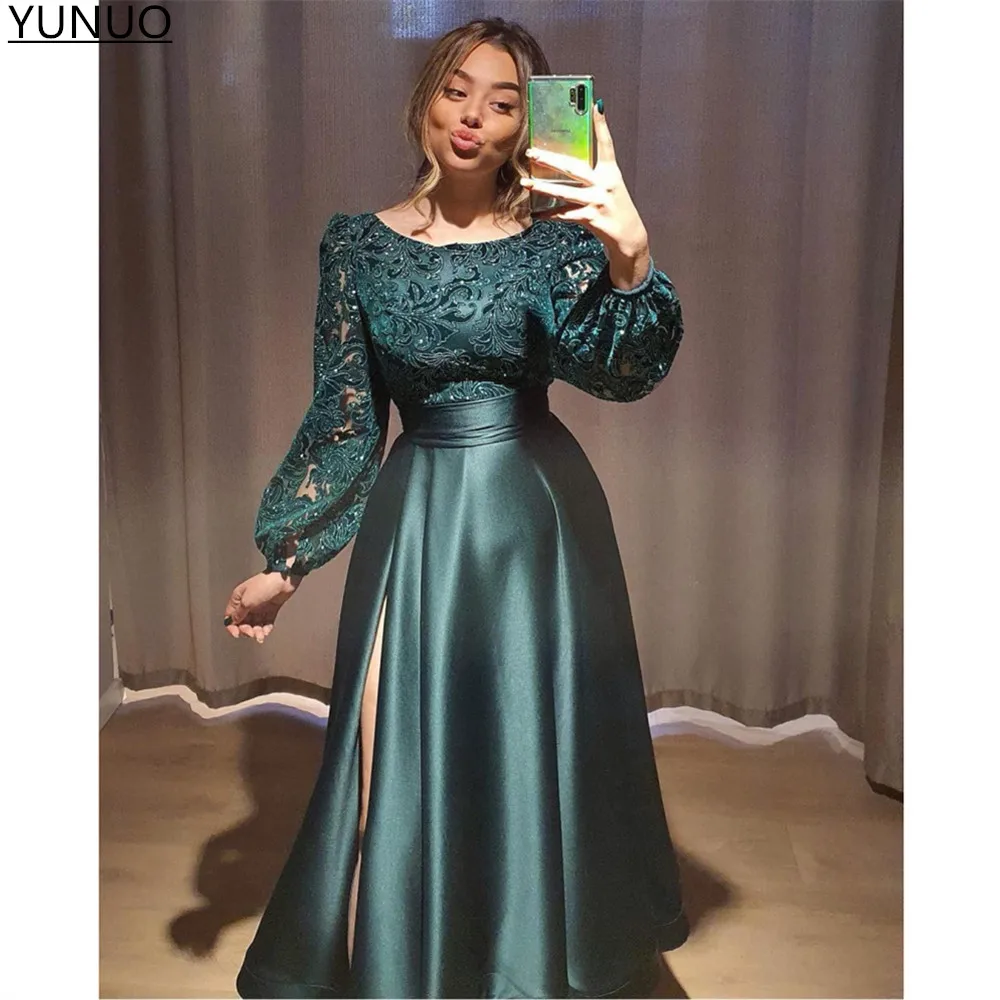 YUNUO Вечерние платья из атласа с длинным рукавом KA wieczorowa офи...