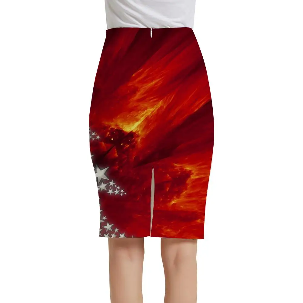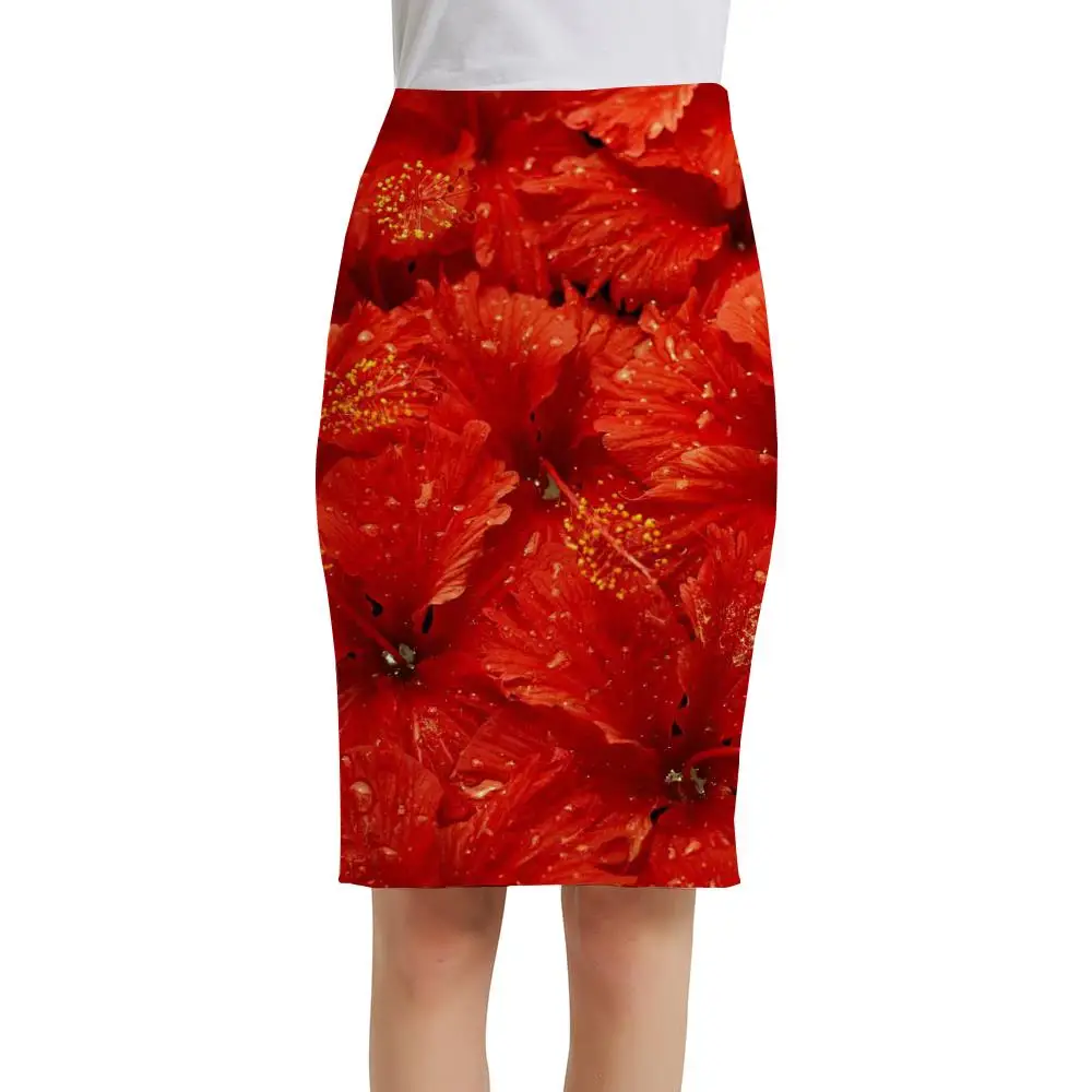 Женская юбка-карандаш KYKU, красная элегантная юбка с рисунком, лето