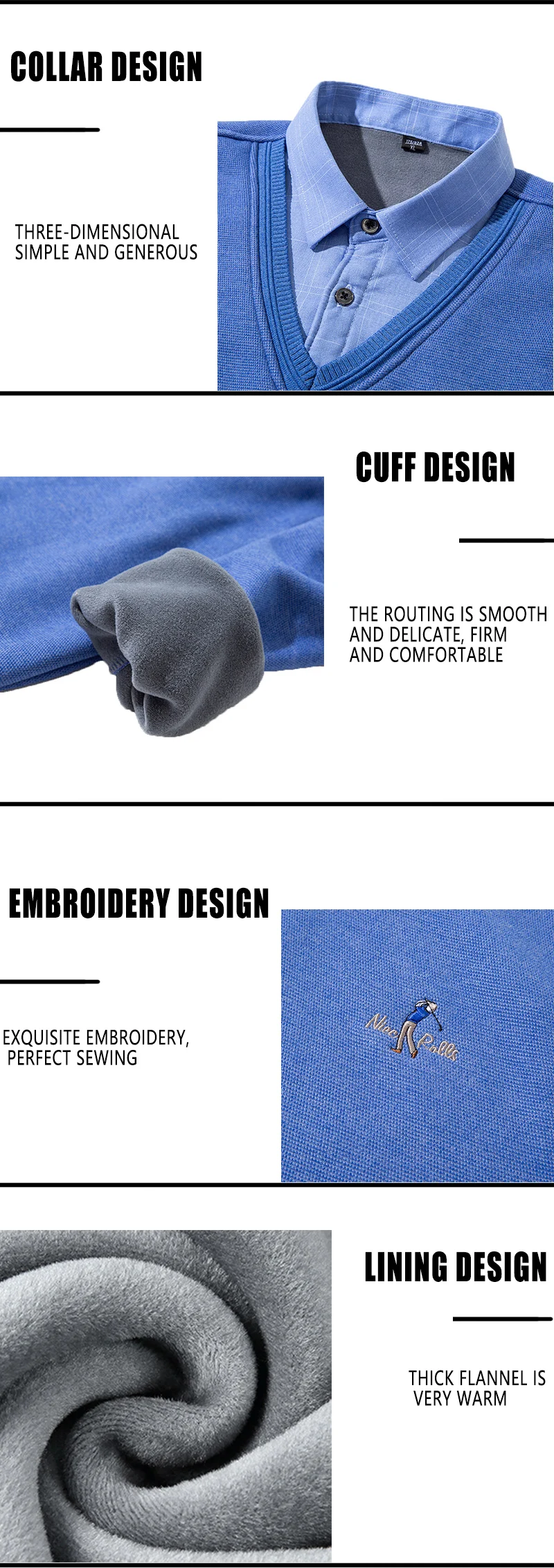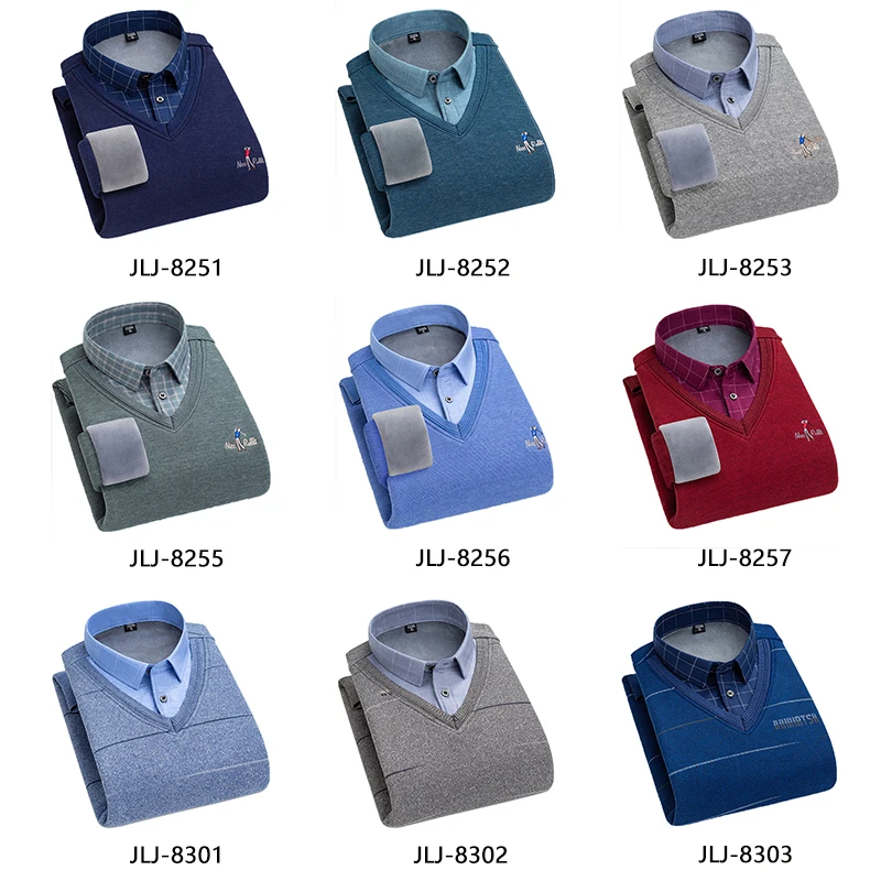 AOLIWEN новые зимние с длинным рукавом плюс бархатные толстые однотонные теплые рубашки мужские имитация двух частей пуловер свитер Повседневная рубашка с V-образным вырезом