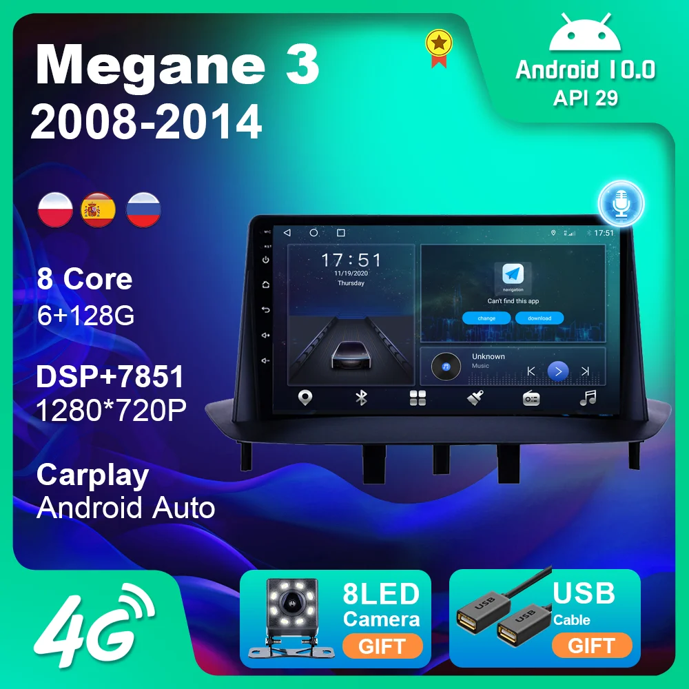 Автомагнитола на Android для Renault Megane 3 2008-2014, автомобильная стереосистема, Авторадио, мультимедийный DVD-плеер, навигация GPS, Carplay, NO 2din DVD