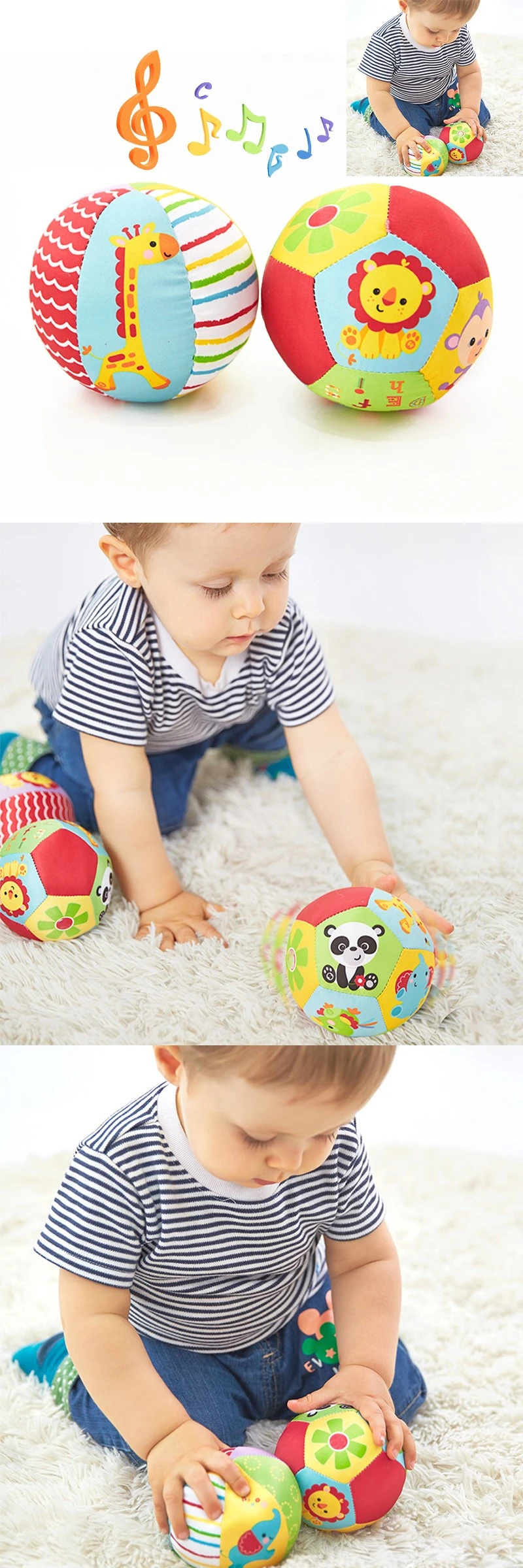 4. Набитый игрушечный шар имеет мягкие текстуры и бирки, которые интересны для ребенка и помогают с тактильным развитием