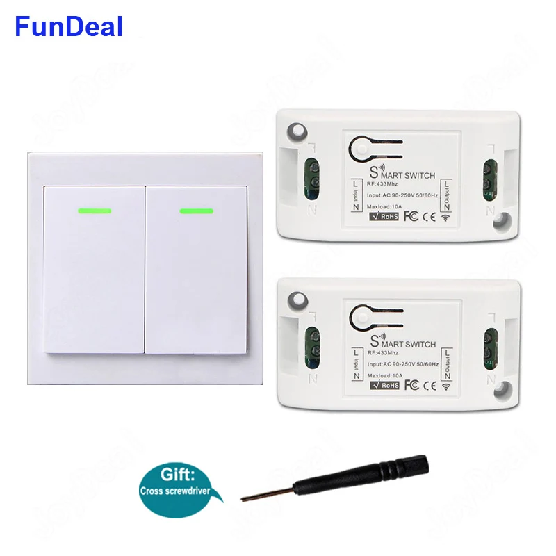 Беспроводной настенный выключатель RF 86, 433 МГц, передатчик для настенной панели и 1-канальный релейный прерыватель переменного тока 110 В 220 В для управления переключателем лампы