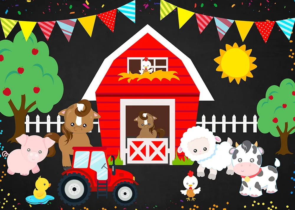 Флосская ферма Тема Фотография фон красный сарай трактор животные фото фон ребенок день рождения Декор баннеры