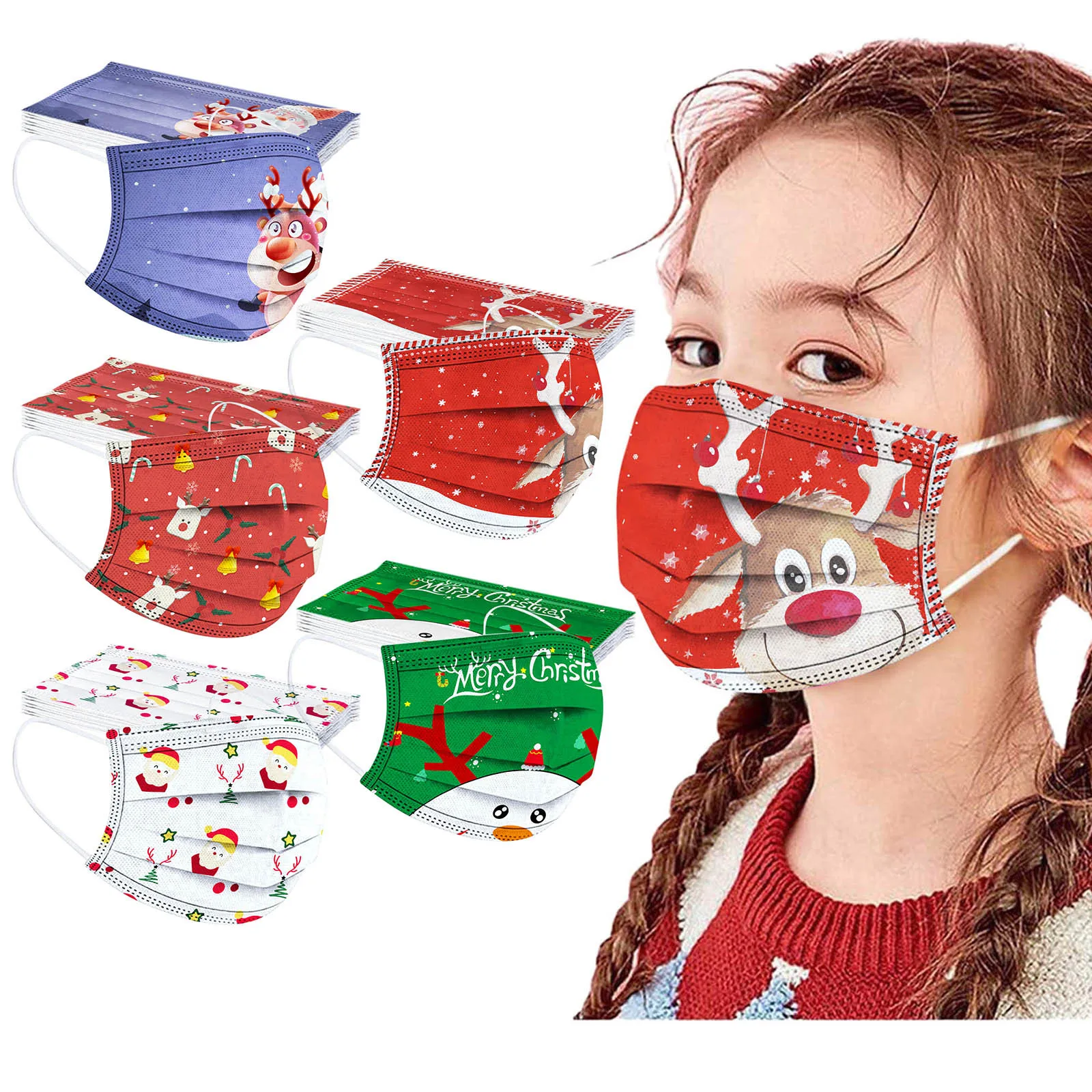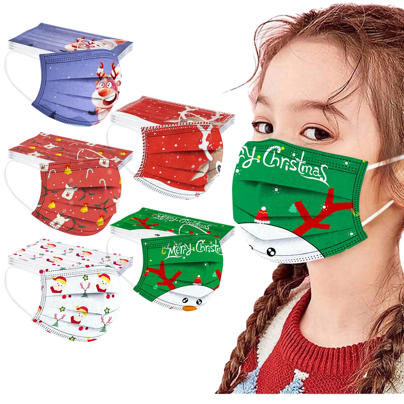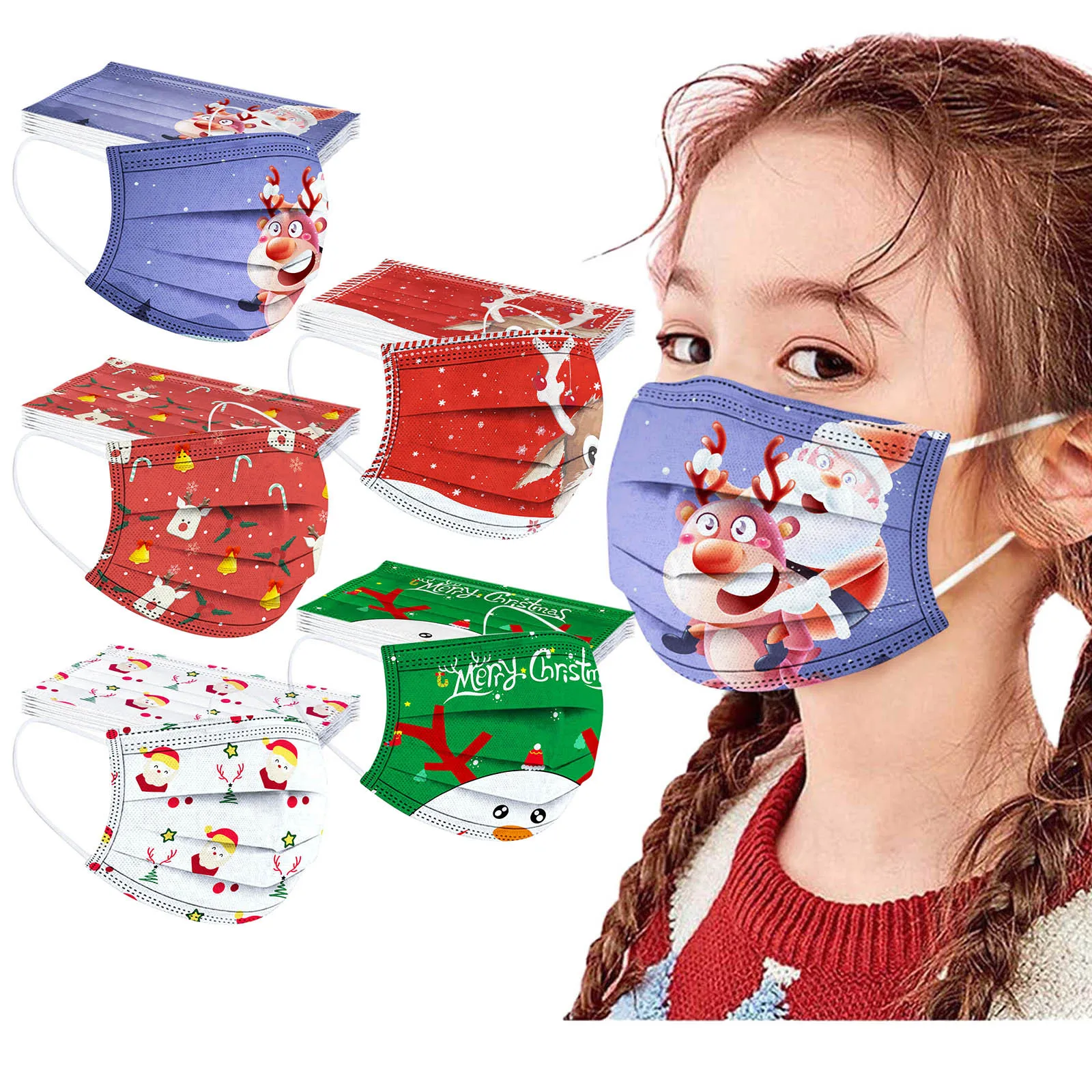 50 шт.лот, детская маска с рождественским принтом, одноразовая маска для лица, закрывающая лицо, детские дышащие пылезащитные ветрозащитные маски