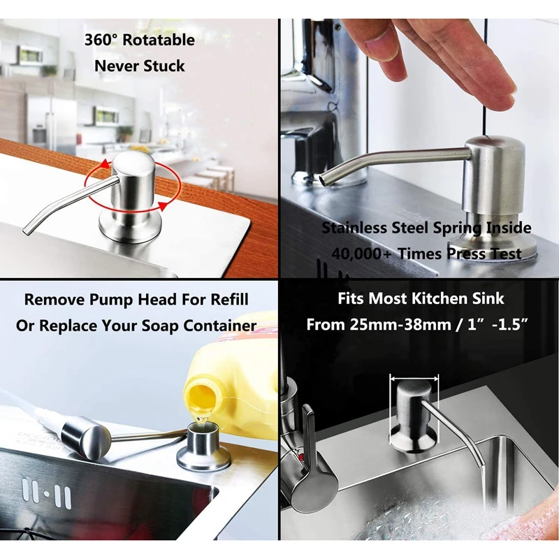Многоцелевой диспенсер для мыла для кухонной раковины можно использовать в качестве Диспенсера для мыла для рук, Диспенсера для жидкого мыла или даже для лосьона. Это должны быть аксессуары для кухонной раковины. Реальная экономия пространства.Изготовлен из наружной нержавеющей стали и внутреннего прочного пластика. Многослойная матовая никелевая готовая головка. Устойчив к коррозии и ржавчине.Больше никаких грязных заправок-115 см/45 дюймов набор силиконовых трубок идет прямо в ваш большой контейнер для мыла. Попрощайтесь с частыми заправками. (ручное измерение, могут быть ошибки)Простота установки-установка DIY занимает всего несколько минут. Затем наслаждайтесь новым диспенсером для мыла. Подходит для большинства столешниц (гранит, нержавеющая сталь, дерево).Подходит для большинства мыльных бутылок-3 дополнительных колпачка для бутылок подходит для большинства мыльных бутылок.Цвет: серебристыйМатериал: нержавеющая сталь + пластик + силиконПосылка:1 * дозатор мыла2 * удлинительные трубки (общая длина 46 дюймов)3 * пробки для бутылок1 * крепежные болтыТолько вышеуказанная посылка, другие товары не включены.Примечание: светильник и различные дисплеи могут привести к тому, что цвет товара на картинке немного отличается от реального. Допускается погрешность в измерениях +/- 1-3 см.