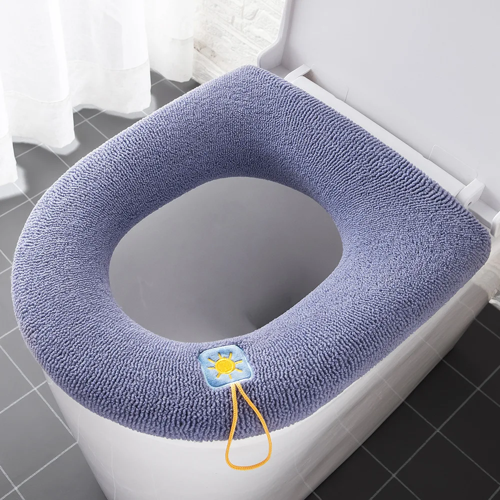 Универсальный чехол на сиденье унитаза, мягкая вязаная зимняя Всесезонная моющаяся Бытовая толстая подкладка с кольцом для унитаза, подходит для крышки большинства размеров