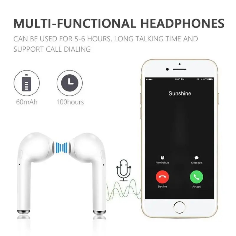 I7 TWS мини портативные беспроводные Bluetooth 5,0 наушники стерео водонепроницаемые наушники для всех iOS Android