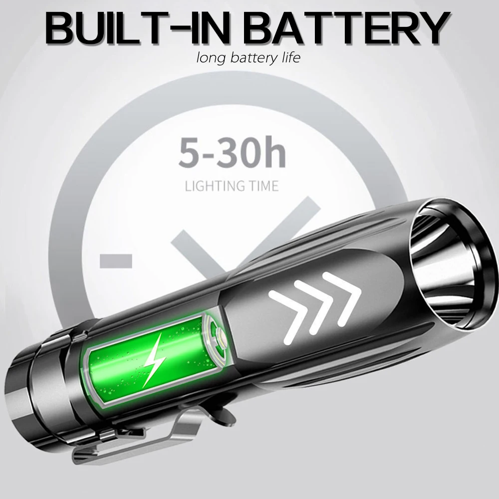 Перезаряжаемый светодиодный мини-фонарик, супер яркий фонарик, фона...