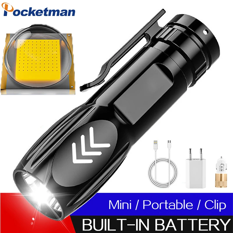 Суперъяркий светодиодный фонарик XHP с широким диапазоном зарядки по USB, портативный карманный фонарик, водонепроницаемый фонарик со встроенным аккумулятором