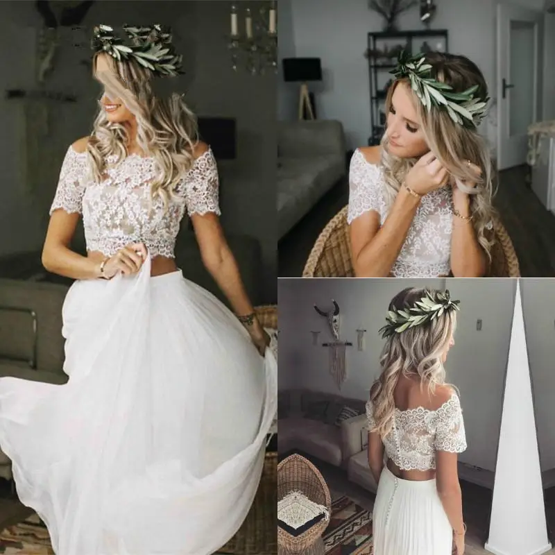 Vestido de Bride Arabic de dos piизящное, Sexy, barato, bohemio, манга corta, de gasa, para playa, talla grande,