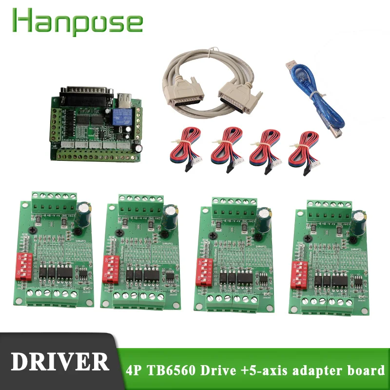 Комплект фрезерных станков с ЧПУ TB6560, комплект из 4 драйверов NEMA17 + 1 5-осевая плата адаптера + Параллельный кабель DB25
