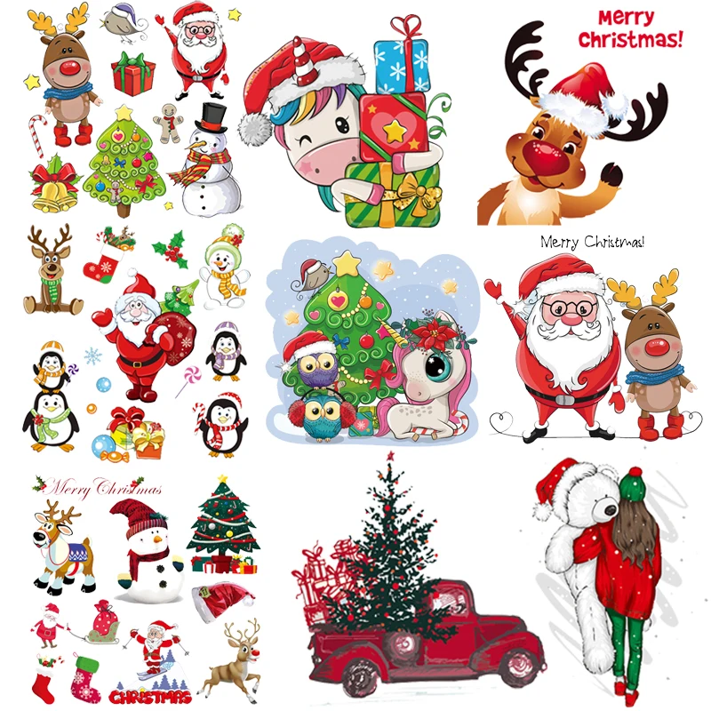 Рождественские накладки на одежду, виниловые термонаклейки для одежды, термонаклейки для детской одежды
