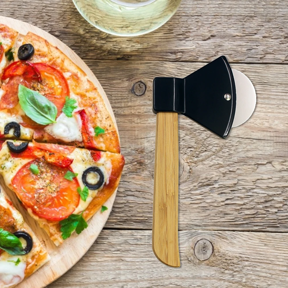 Топор для пиццы с бамбуковыми ручками, острые вращающиеся лезвия для хлеба, тортов, кухонный режущий инструмент