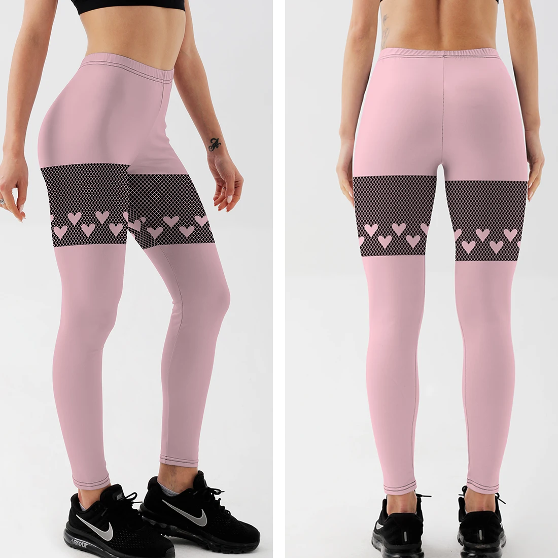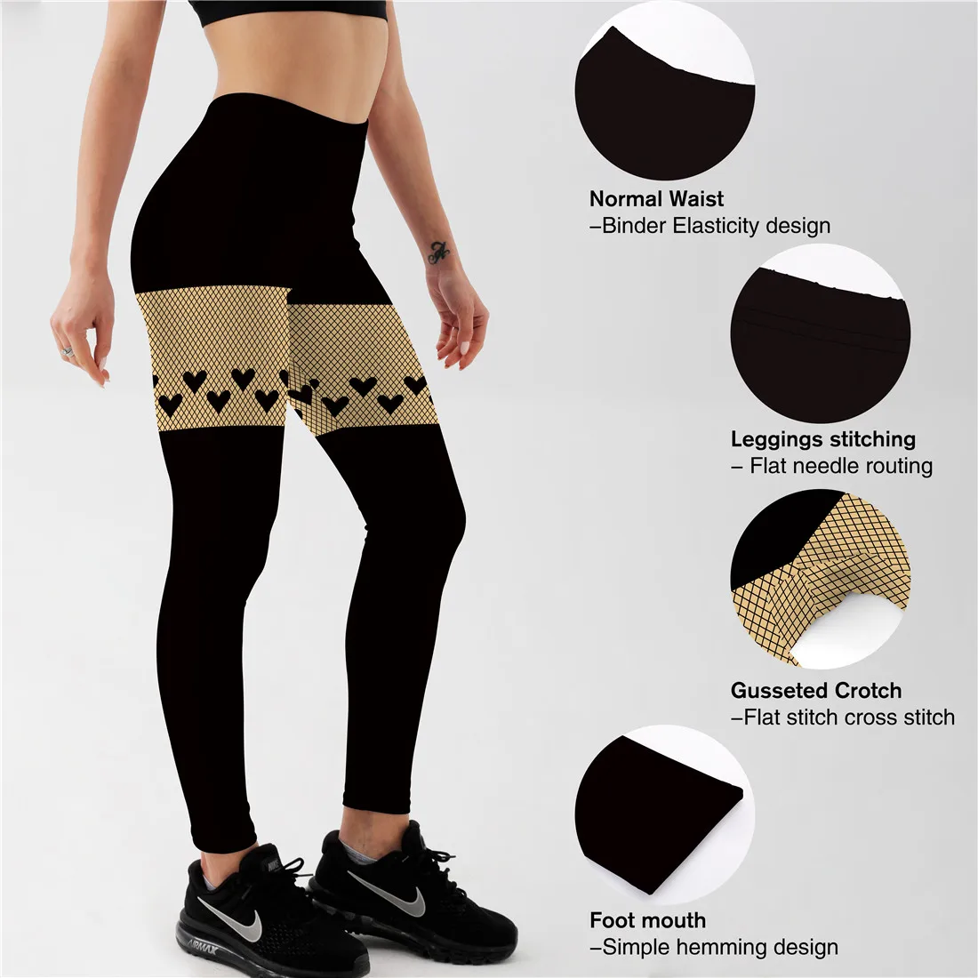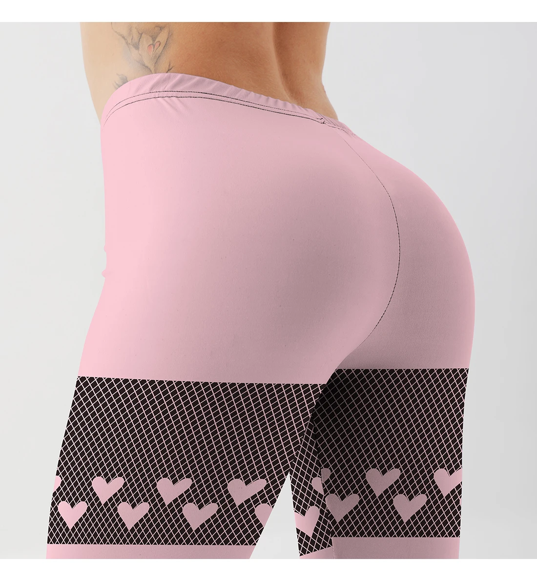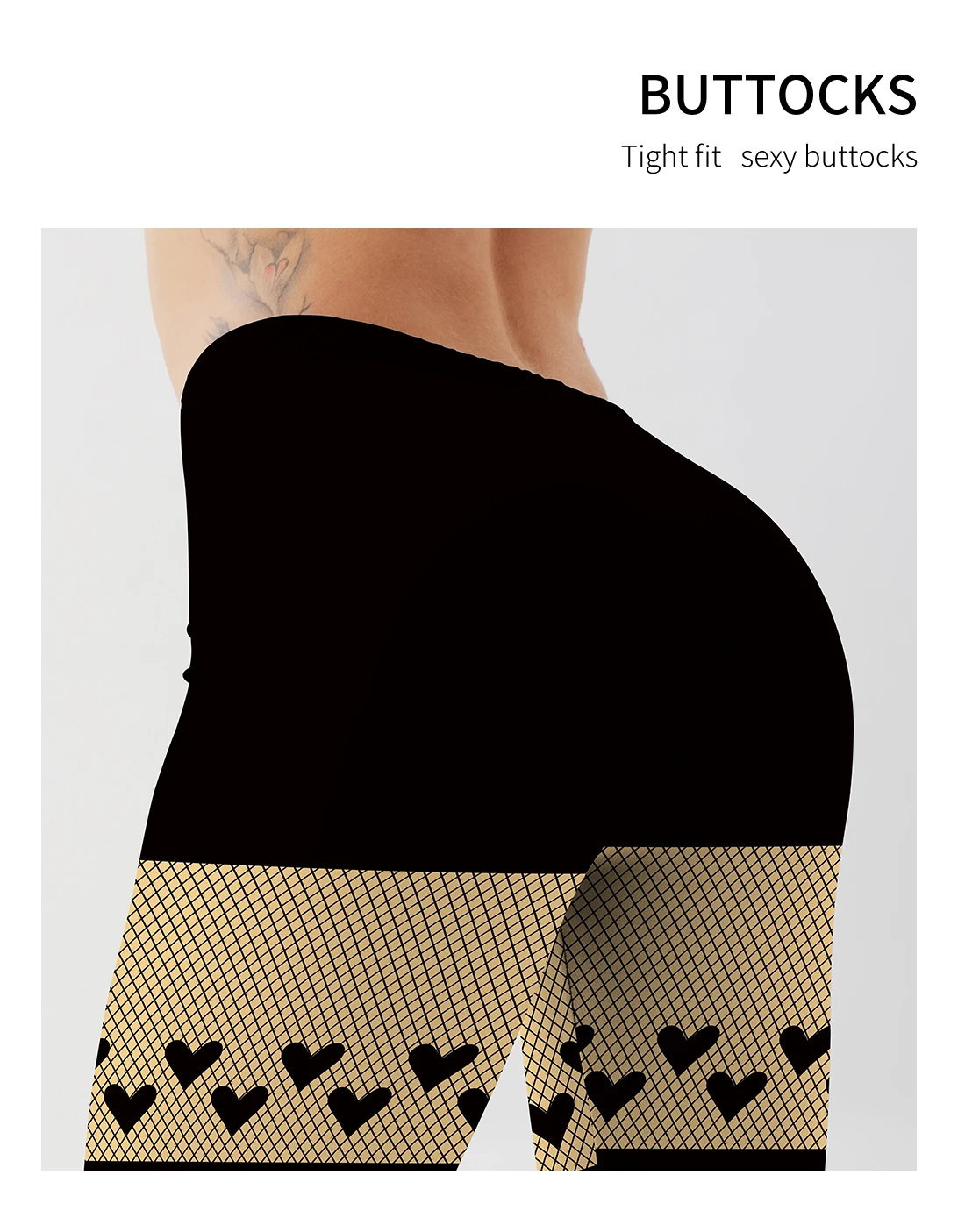 Леггинсы женские сетчатые в форме сердца, пикантные брюки с черным принтом, Стрейчевые Клубные штаны с эффектом пуш-ап для занятий фитнесом