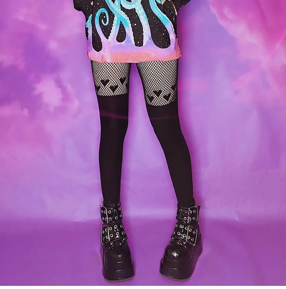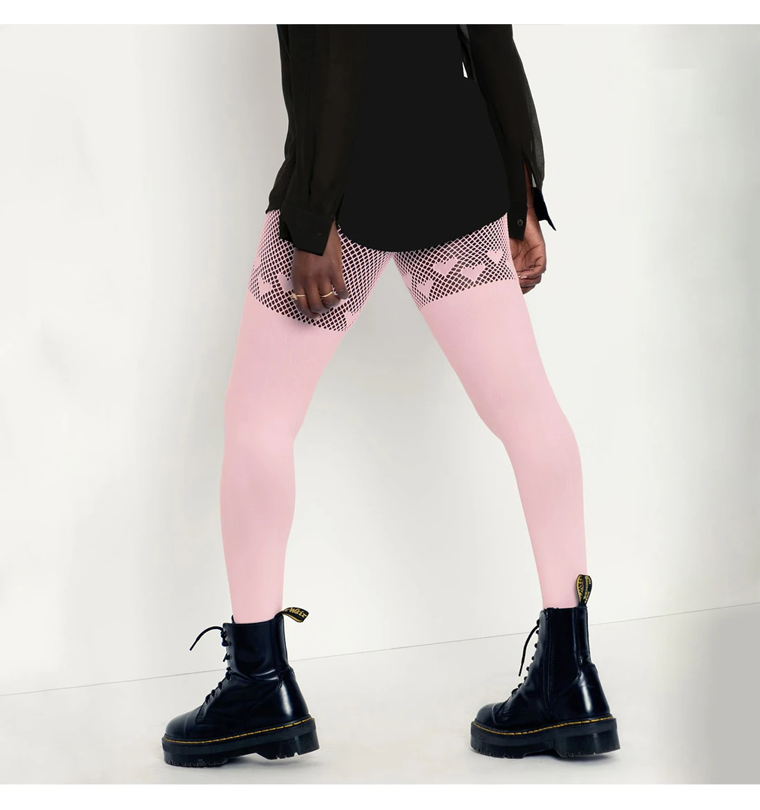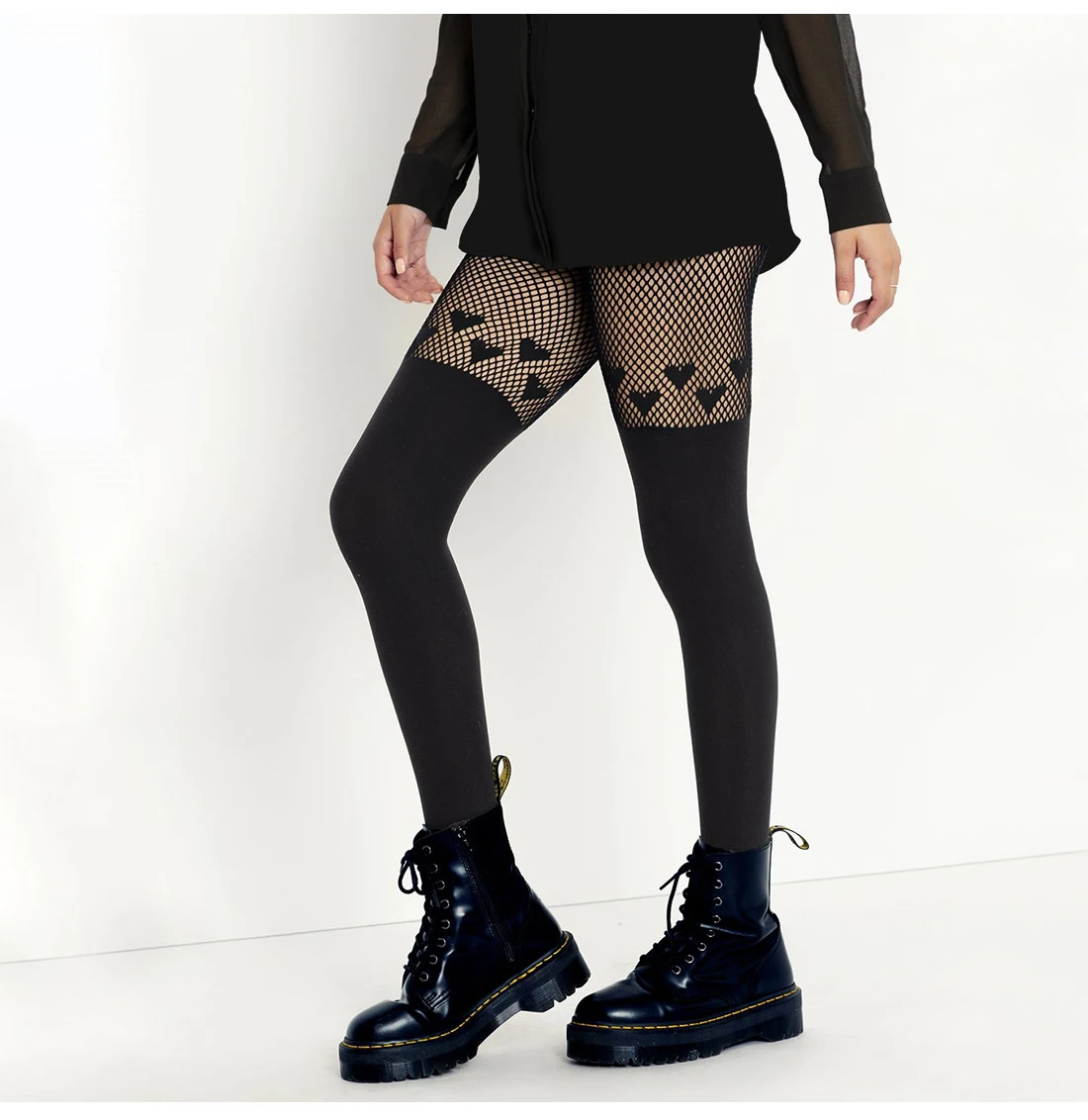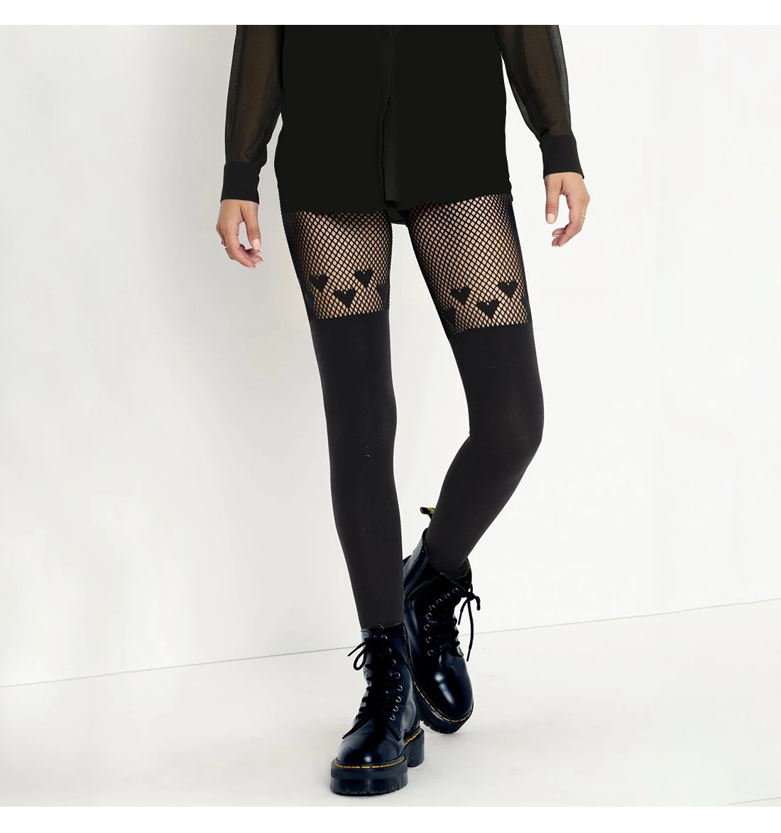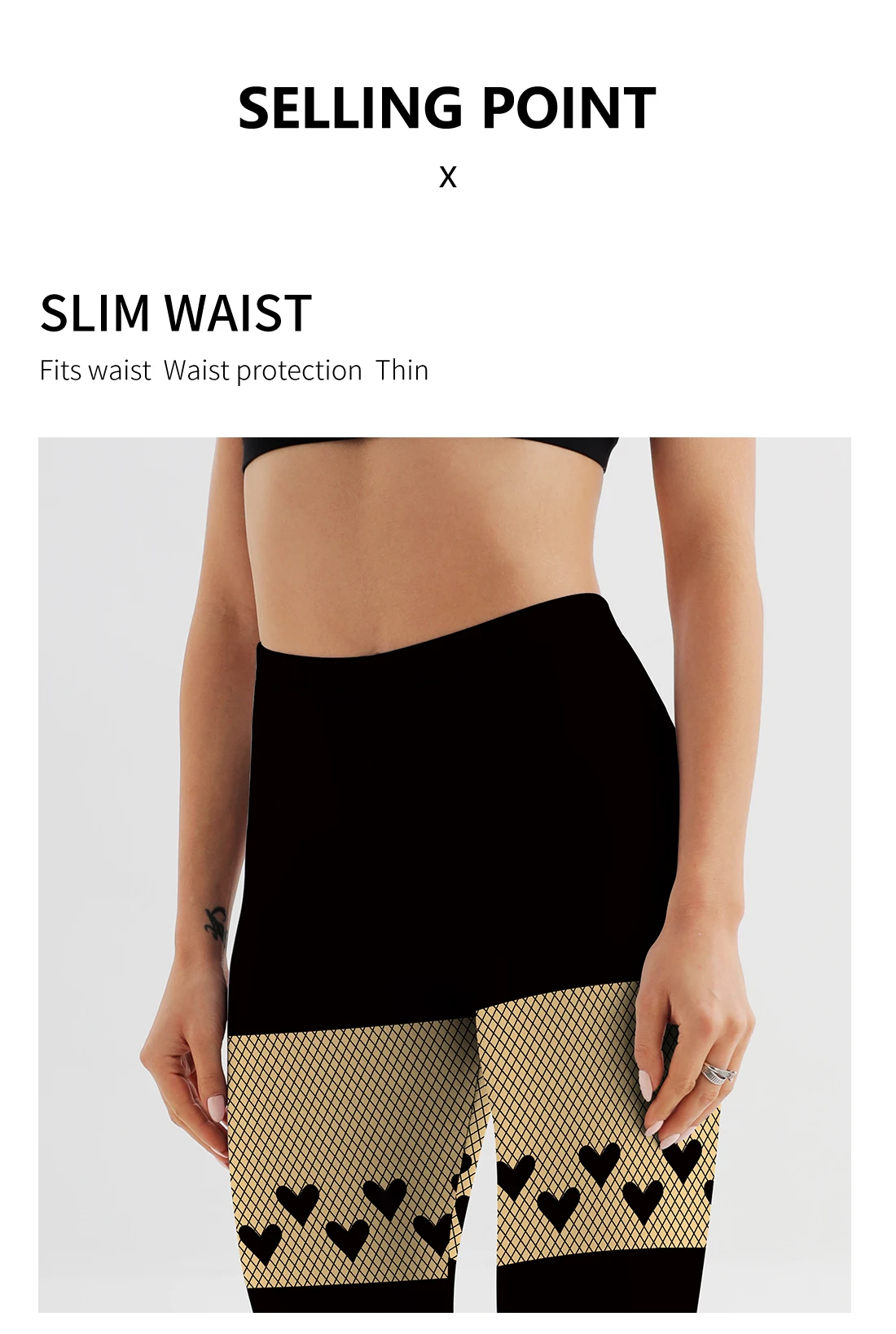Леггинсы женские сетчатые в форме сердца, пикантные брюки с черным принтом, Стрейчевые Клубные штаны с эффектом пуш-ап для занятий фитнесом