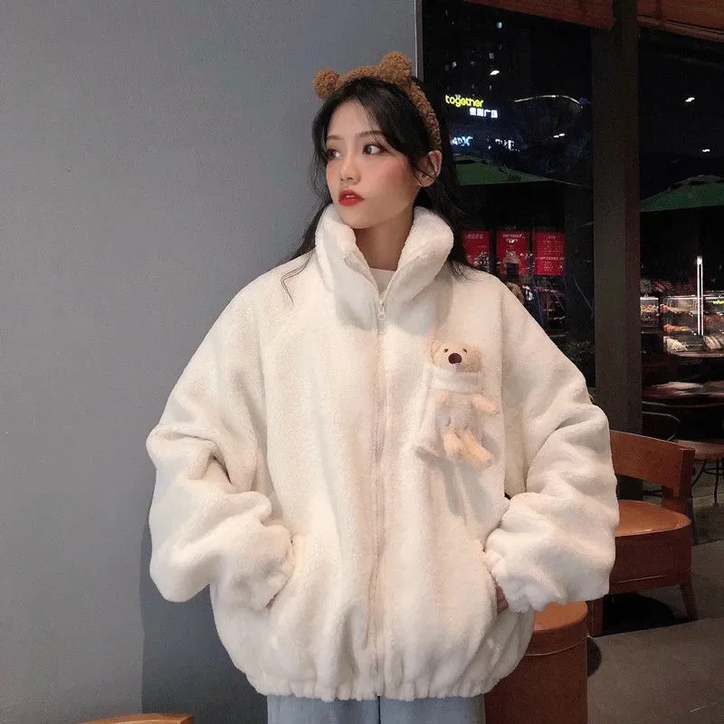 Осень-зима 2021 Новое пальто из овечьей шерсти Корейская женская Свободная модная плюшевая утепленная хлопковая куртка Женское пальто