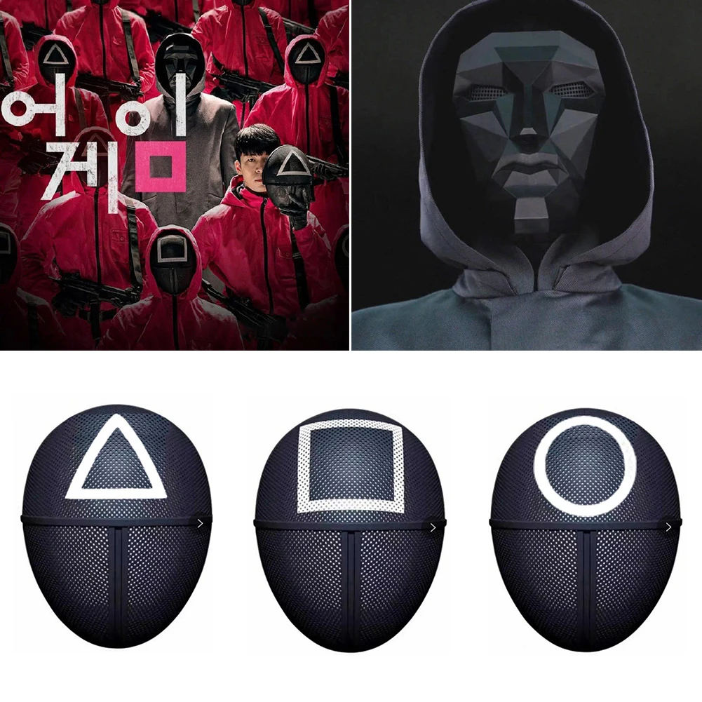 Костюм из игры кальмар, маска для косплея, комбинезон, Круглый, шестигранный, квадратный, треугольный, пластиковый шлем, костюм маски вечеринка Хэллоуин