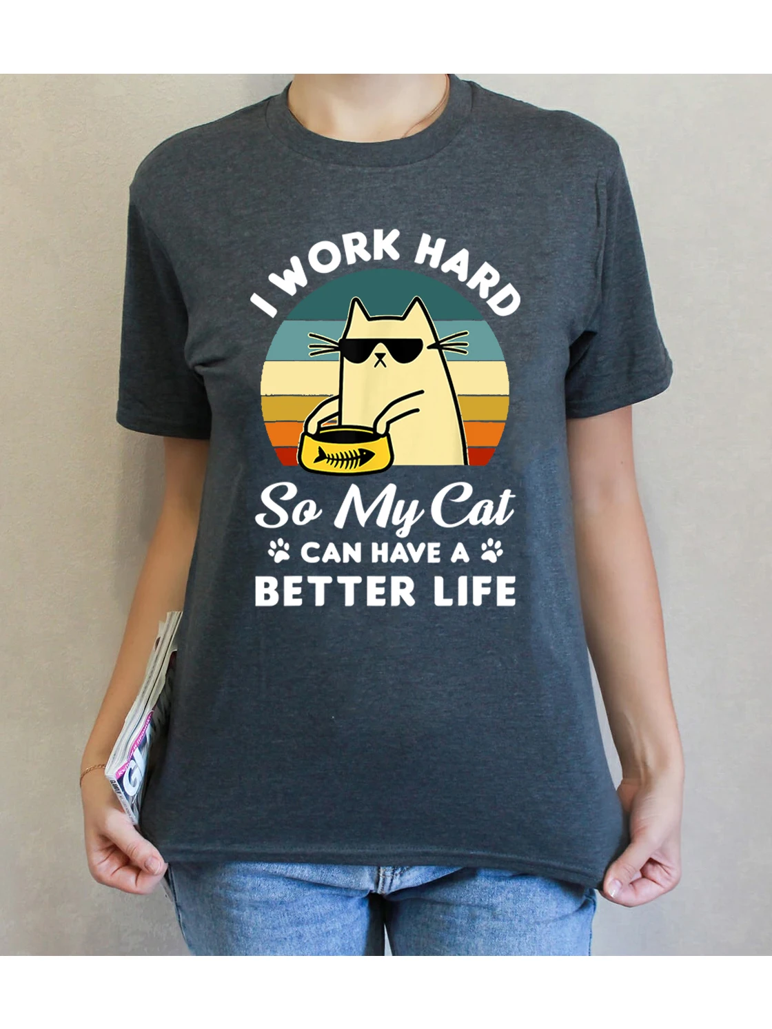 Забавные женские рубашки с изображением оранжевого кота, 90S, I Work Hard So My Cat Can Have A Better Life, футболка, женская одежда, топы унисекс для девочек