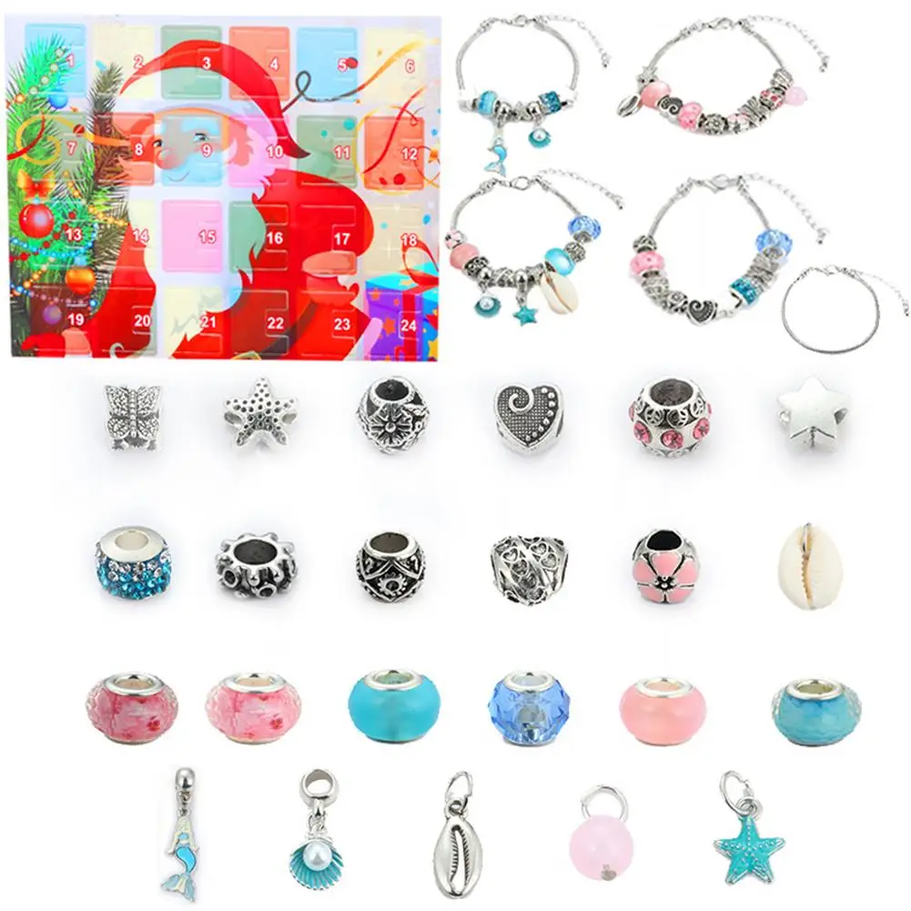 Новогодний календарь с обратным отсчетом, сделай сам, ювелирные изделия, календарь с адвентом, набор сделай сам, браслет, набор аксессуаров, замечательный Рождественский подарок для детей