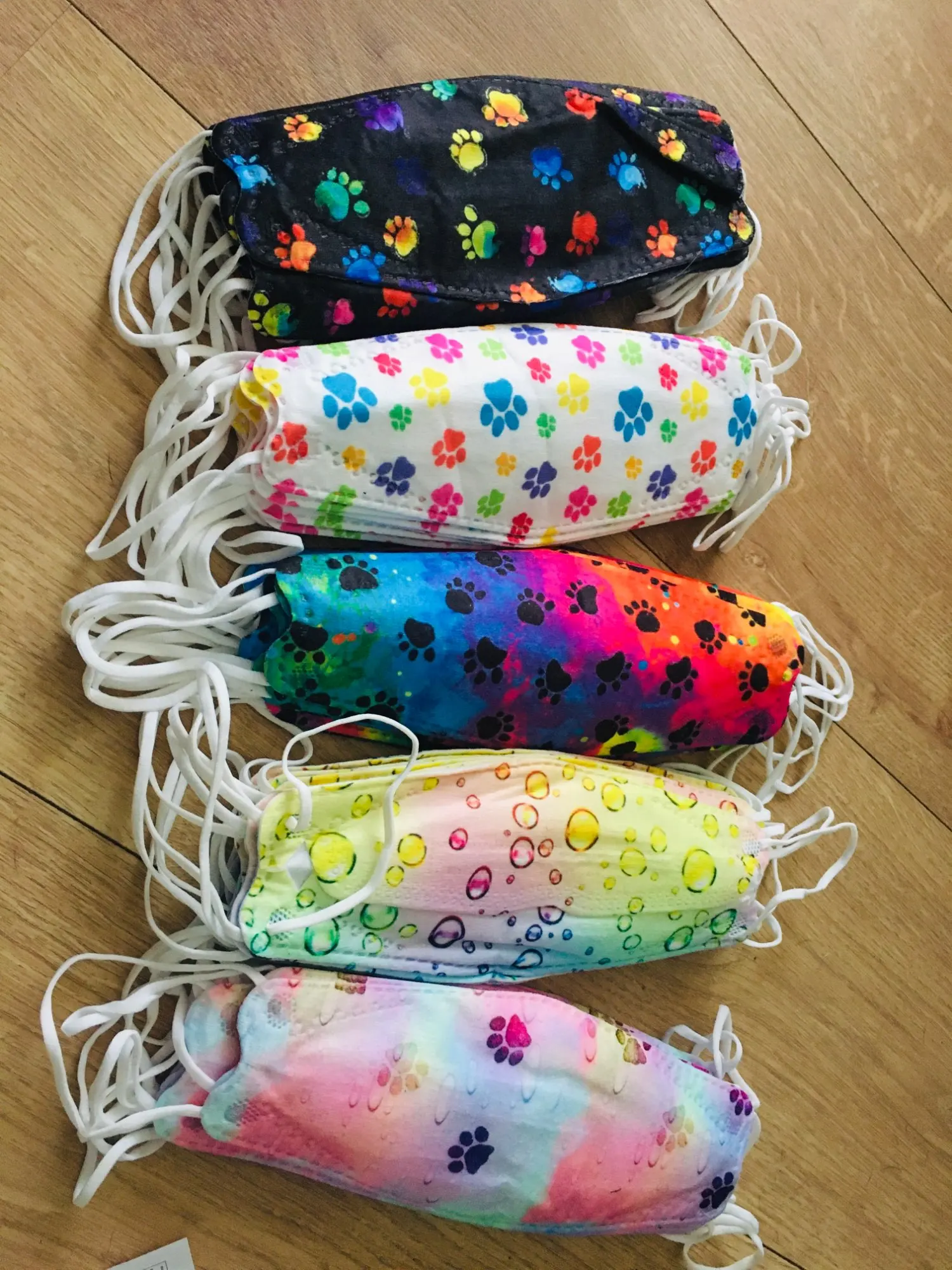 Все цвета красивые и яркие, мне очень нравятся радужные. Узор немного отличается на каждой маске, мне нравится, что они не идентичны