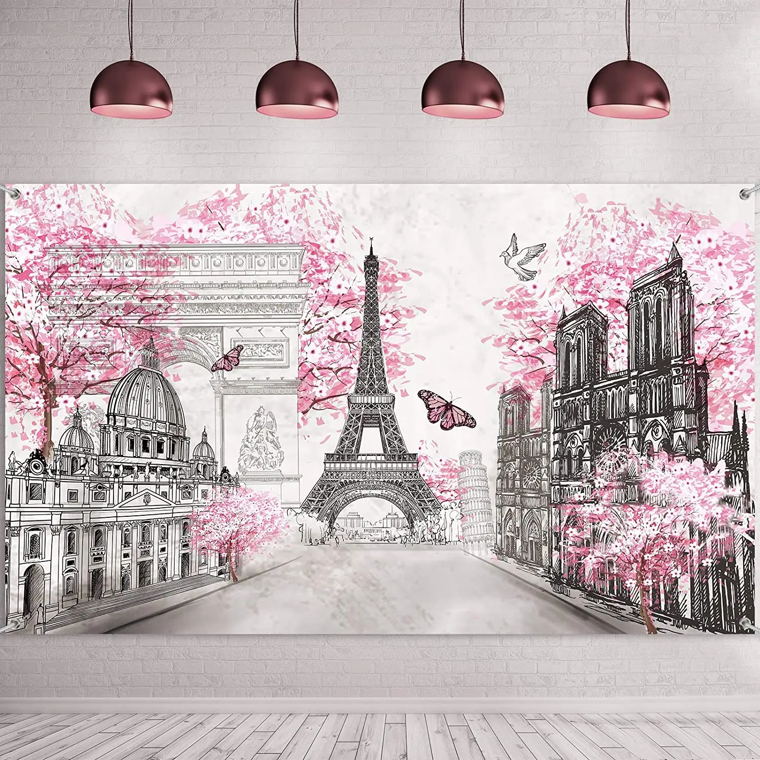 Фото Парижская Эйфелева башня плакат розовый фон Европейский городской пейзаж для гостиной Девушка Спальня вечерние НКА декорация фон