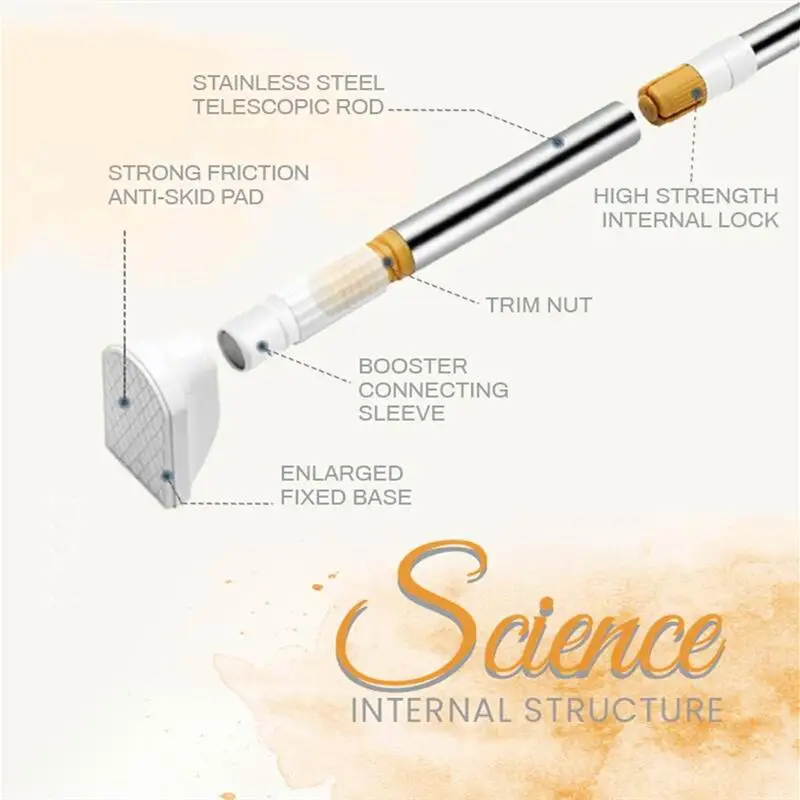 Простота установкиНатяжной стержень прост в растяжении, тяге и повороте, без инструментов, без сверления, без повреждений; Нескользящие резиновые головки на обоих концах стержня увеличивают трение, удобство для вашего использования.