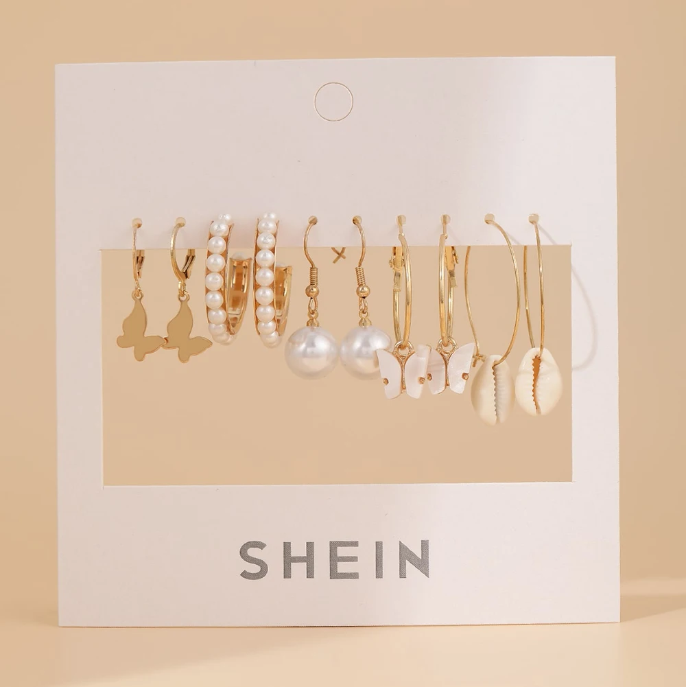 Модная Золотая Геометрическая бабочка круглые жемчужные кольца иску...