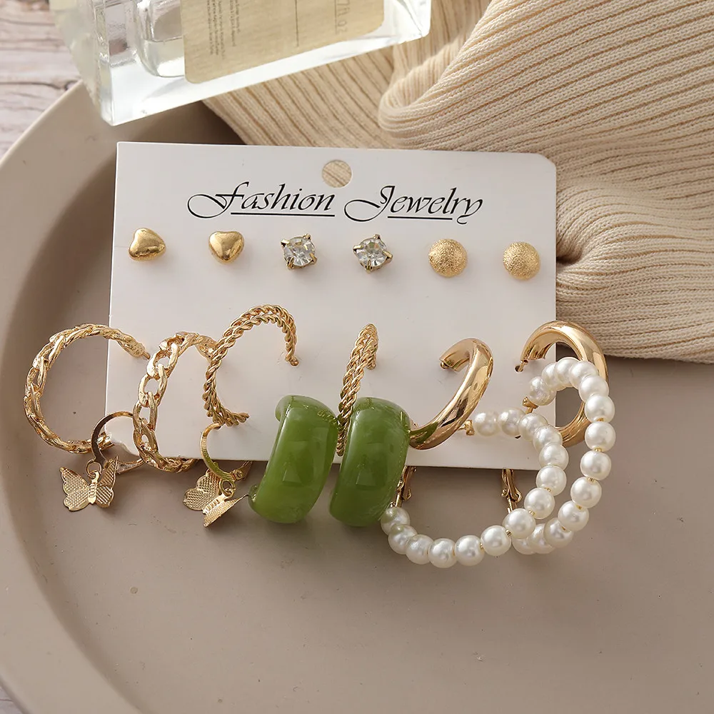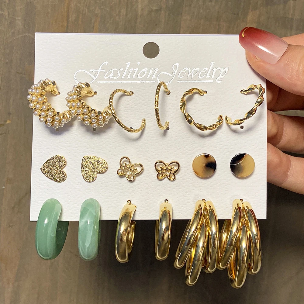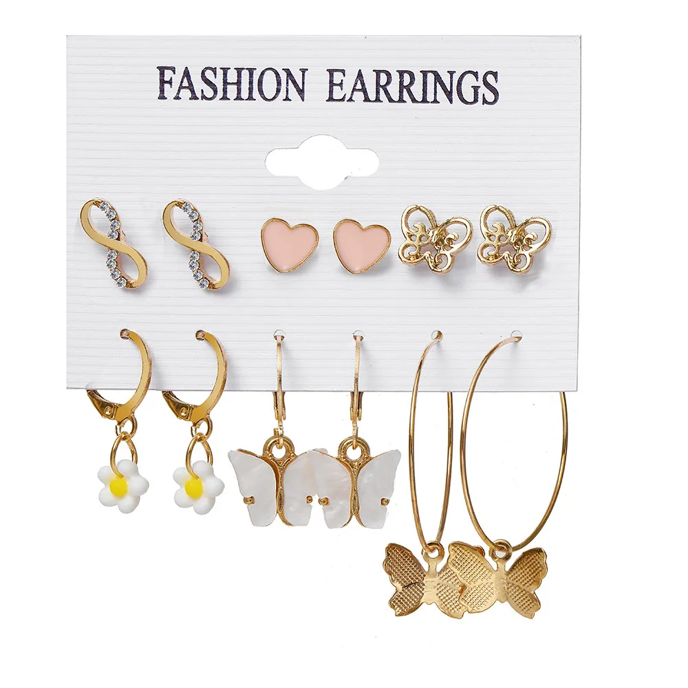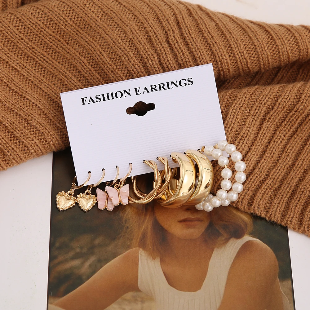 Модные Акриловые серьги-кольца в форме бабочки и сердца, геометрические золотые металлические серьги-кольца, модные ювелирные украшения для вечеринки 2021