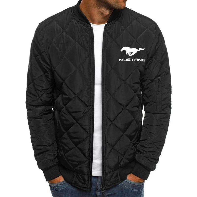 Зимний мужской пуловер с принтом логотипа машины Mustang, Повседневная однотонная комбинированная хлопковая одежда высокого качества, утепленная мужская куртка в полоску