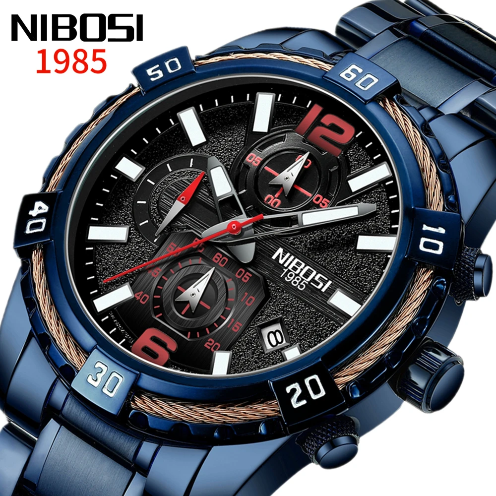 NIBOSI 2020 мужские часы люксовые бренды с большим циферблатом водонепроницаемые хронограф мужские часы полностью стальные спортивные наручные часы Relogio Masculino