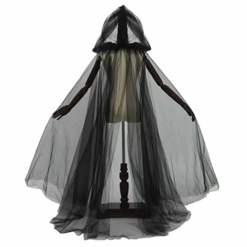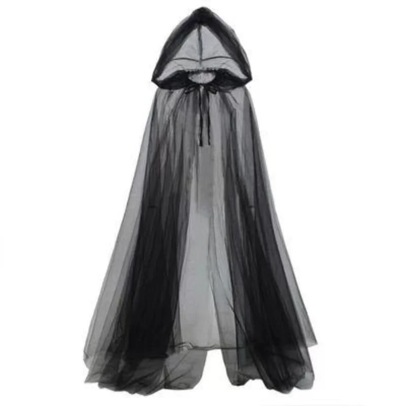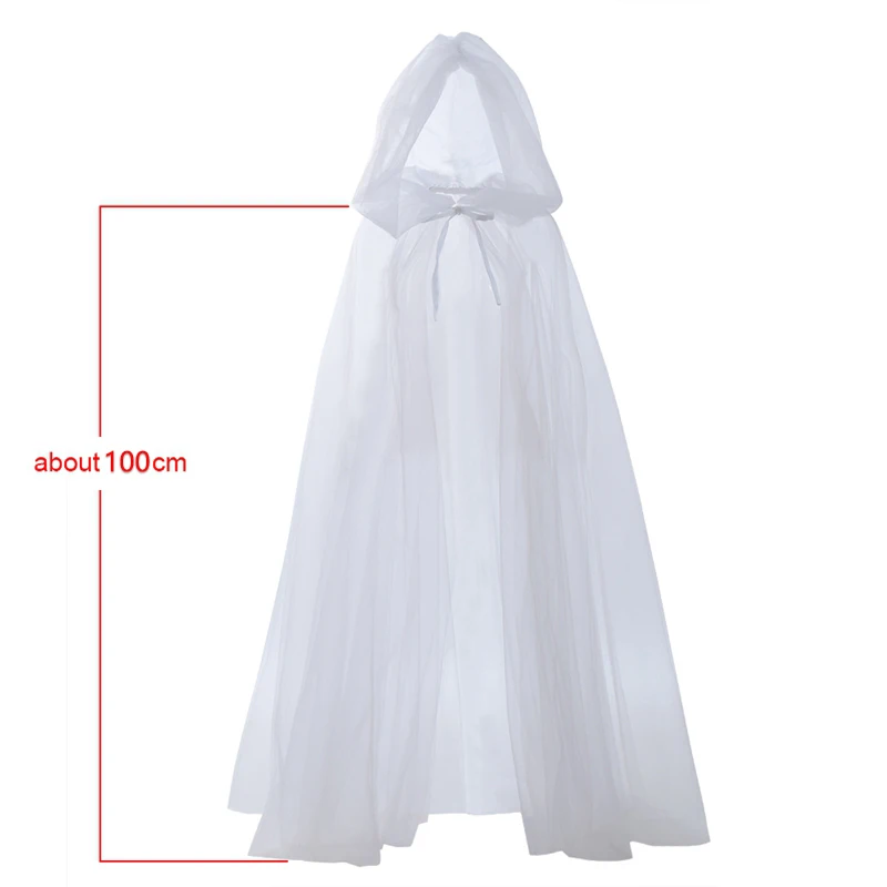 ТюльАтласная застежка на ГалстукиПлащ ведьмы с капюшоном для костюма с привидениямиОдин размер подходит для большинства взрослых и подростков, вы можете легко сделать длину тюля ножницамиГотический плащ ведьмы полной длины для женщин, девочекЧерный и белый плащ на Хэллоуин с капюшономКостюм вампира-призрака для косплеяПодходит для женщин и девочек-одеваются как призрак невесты, ведьмы, ведьмы, волшебника