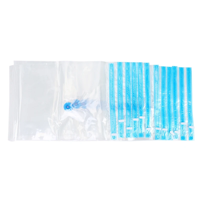 Экономия пространства: с вакуумной сумкой у вас наконец есть место в шкафу или во время путешествий в чемодане.Требования к пространству ваших полотенец, постельного белья, подушек, курток, свитеров, плюшевых и других текстильных изделий теперь могут быть уменьшены вакуумной сумкой до 75%. Из вашего нового места для хранения, вы будете абсолютно глупы.Воздух и водонепроницаемость: двойная молния делает вакуумные пакеты абсолютно воздухонепроницаемыми.Защита: больше нет запахов или плесени.Из-за материала с покрытием содержимое пылесоса полностью защищено от: запахов, плесени, клещей, насекомых, влаги ....Сборка: установка проста с помощью стандартного пылесоса.Просто подключите пылесос к выпускной клапан, проверьте, находится ли резиновое уплотнение в клапане.Теперь полностью пропылесосите воздух с помощью пылесоса, а затем закройте его крышкой клапана.(В сумке около 7-8 свитеров подходит для 10-15 футболок.)Цвет: прозрачный, синийМатериал: PA + PEРазмер: 60*40 смПосылка:12 * Вакуумный компрессионный мешокТолько вышеуказанная посылка, другие товары не включены.Примечание: светильник и различные дисплеи могут привести к тому, что цвет товара на картинке немного отличается от реального. Допускается погрешность в измерениях +/- 1-3 см.