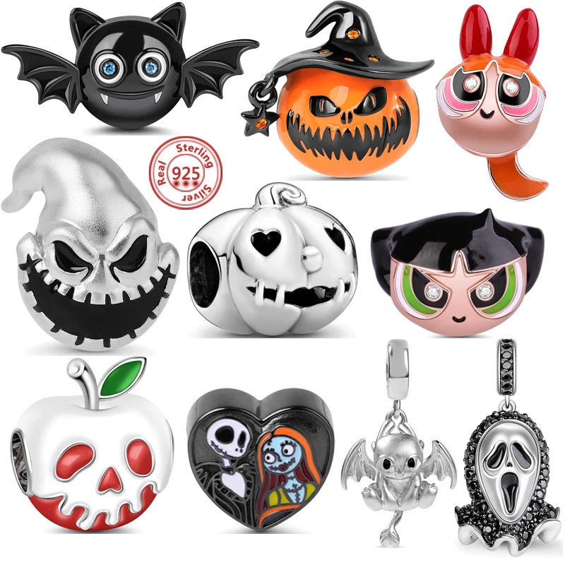 Новинка 925 серебро Хэллоуин Тыква череп милые забавные бусины Шарм...