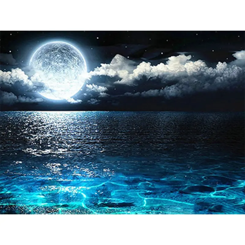 Алмазная вышивка 5D с Луной нижней части Морского Пейзажа, алмазная вышивка для творчества, алмазная живопись, мозаичное украшение