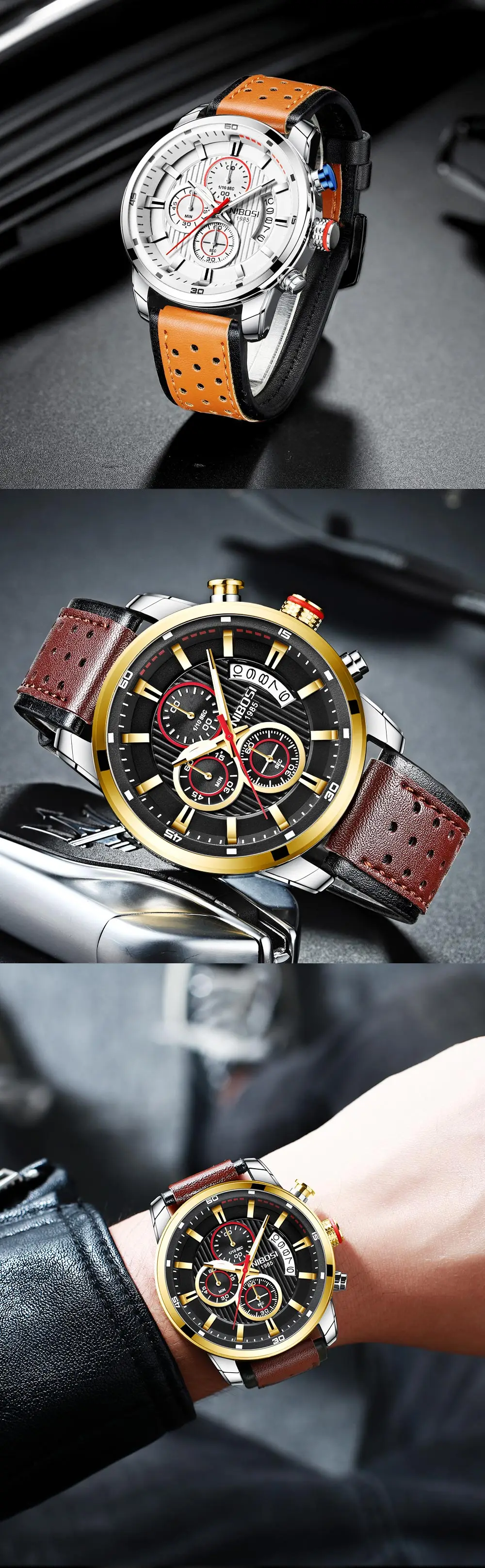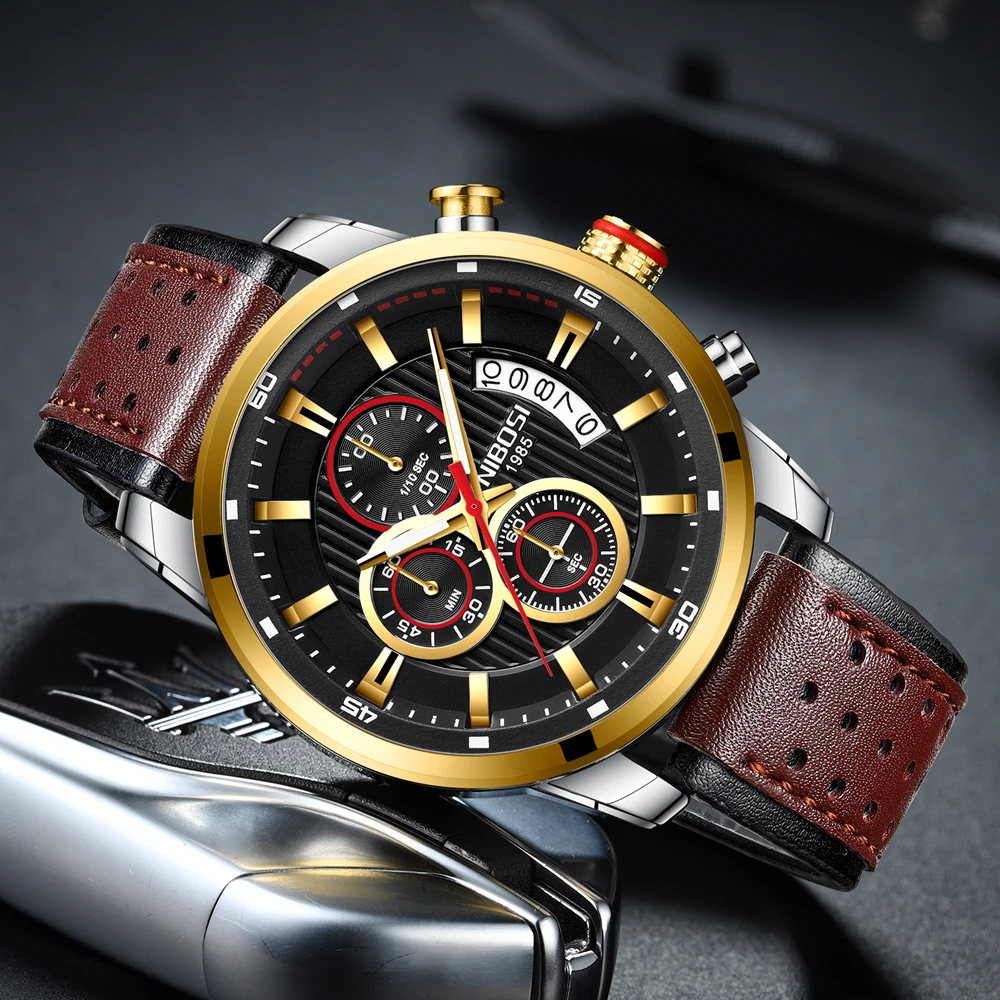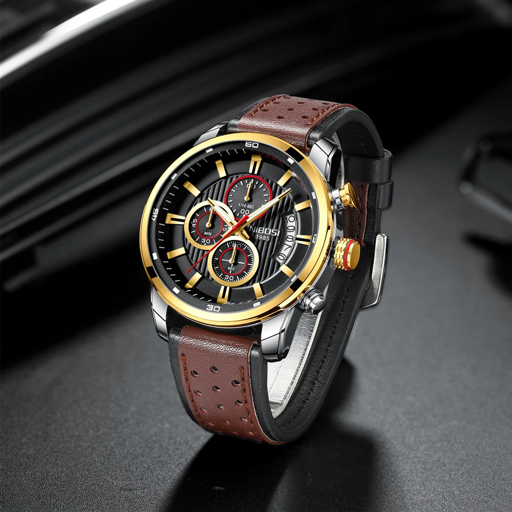 Модные мужские часы NIBOSI, брендовые Роскошные спортивные часы с хронографом, мужские часы с кожаным ремешком, военные кварцевые часы для мужчин, наручные часы