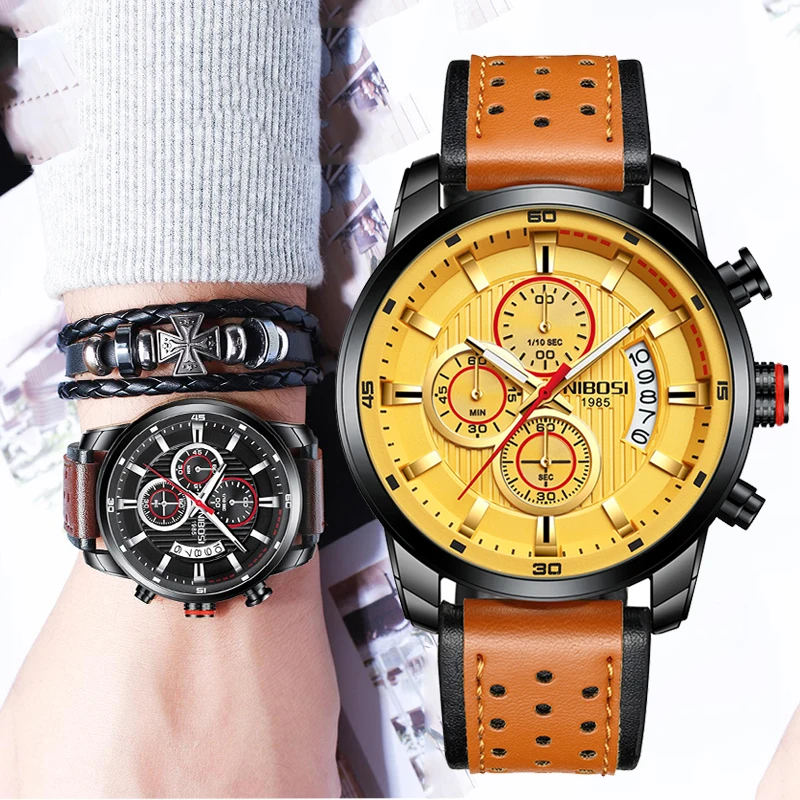Часы наручные NIBOSI Мужские кварцевые, модные брендовые Роскошные ...