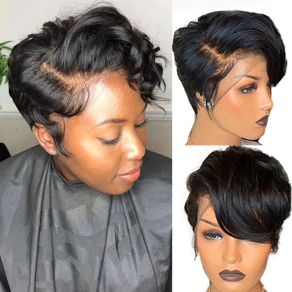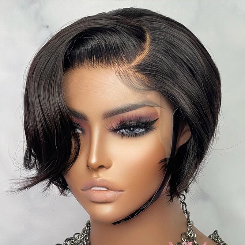 Стрижка Пикси парик человеческих волос прямые короткие боб парик 13x1 часть прозрачный кружевной парик боковая часть парики для Для женщин предварительно волосяного покрова