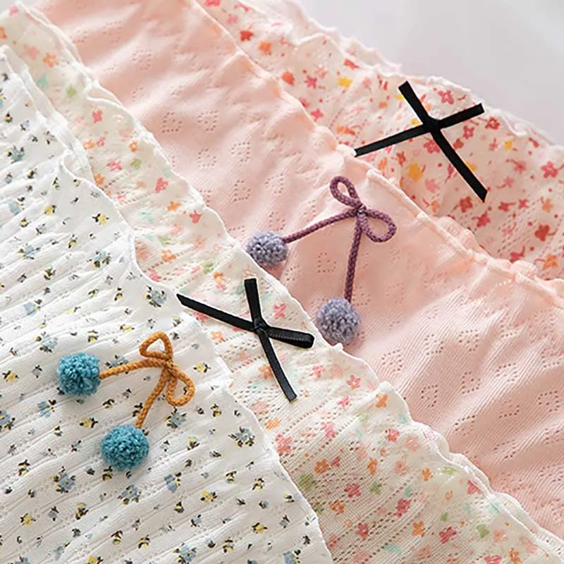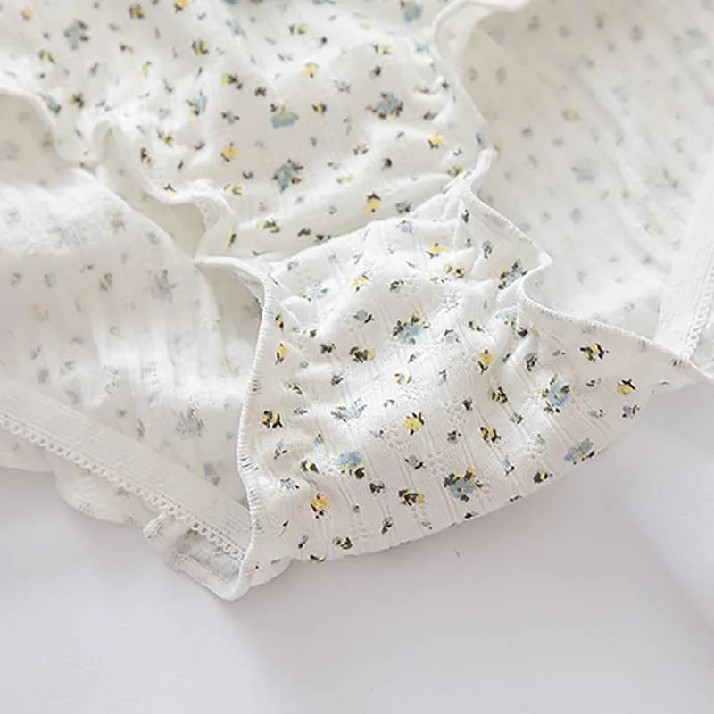 1 шт., женские хлопковые трусы с оборками, со средней посадкой