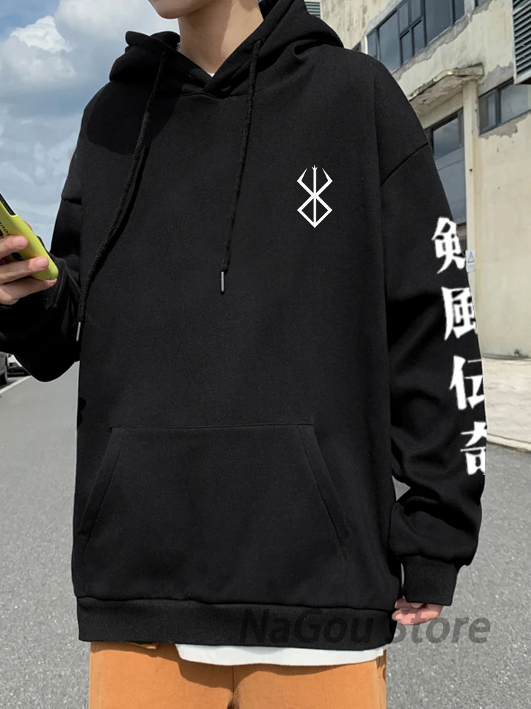 Популярная Аниме Толстовка с капюшоном Berserk логотип хип-хоп с дл...