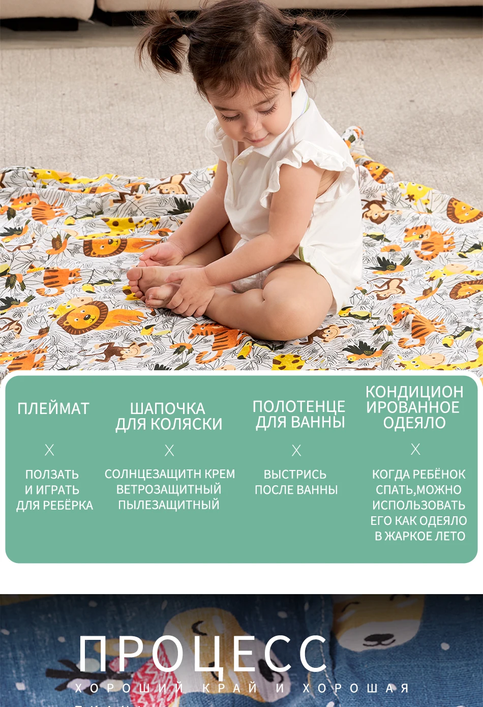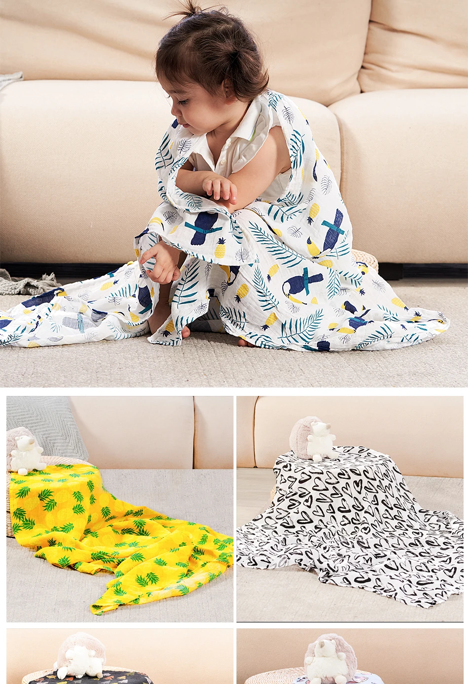 Материал: 100% хлопок (2 слоев детские одеяла для пеленания)