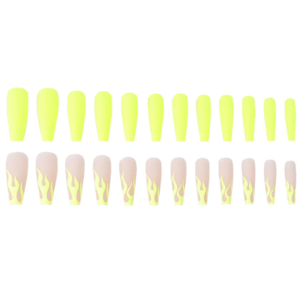 24 шт.кор. флуоресцентные желтые накладные ногти в форме балерины с пламенем, съемные гробные накладные ногти, накладные ногти для маникюра