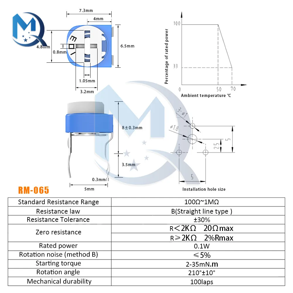 10 шт.лот RM065 100 200 500 Ом 1 к 2 к 2,2 К 3 к 3,3 к 5 к 10 к 20 ...